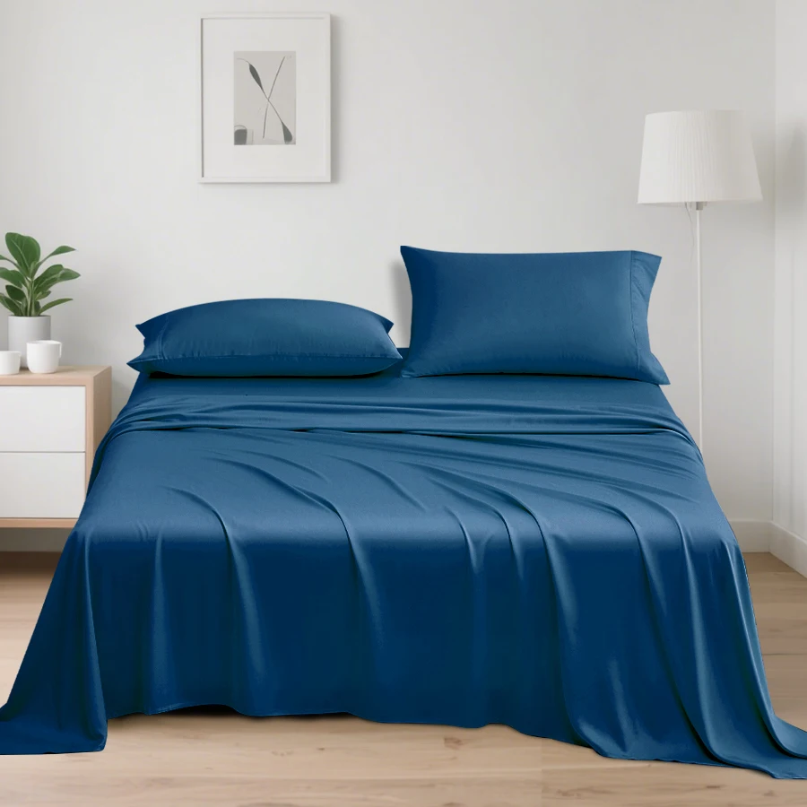 100% Bamboo Fiber Woven Modern Solid Color Bedding Set Super King Size Includes Flat Bed Sheet Fitted Duvet Cover