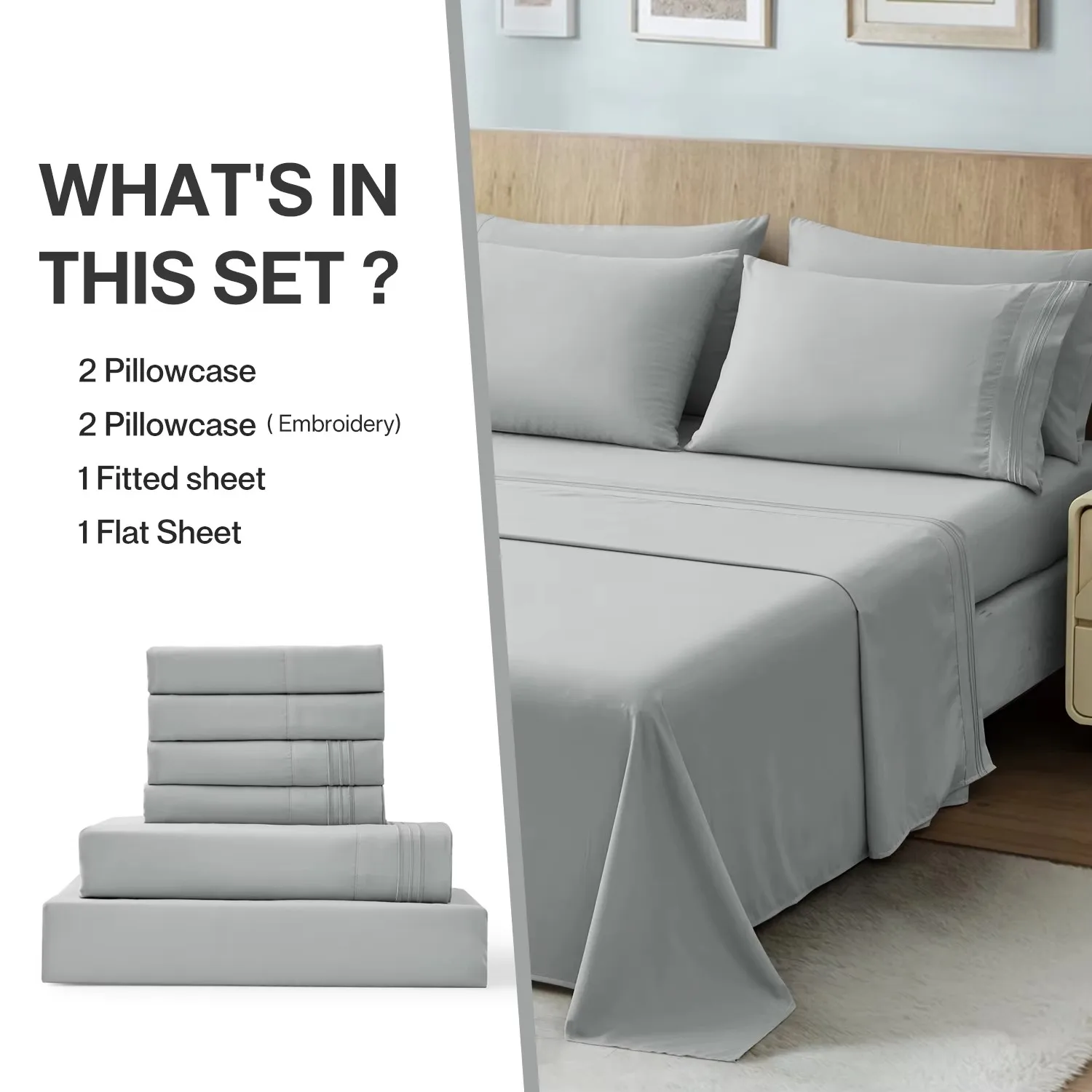 100% Bamboo Fiber Woven Modern Solid Color Bedding Set Super King Size Includes Flat Bed Sheet Fitted Duvet Cover
