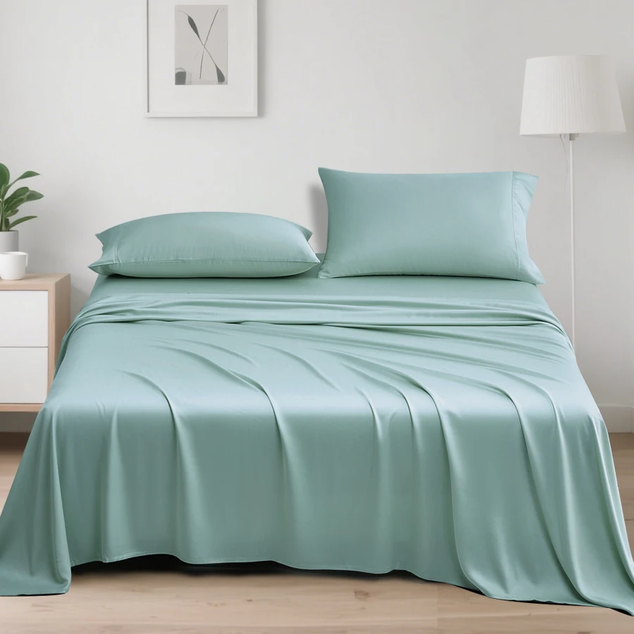 Customisable 100% Organic Bamboo Lyocel Bed Sheets Set with 1 Flat Sheet 1 Fitted Sheet 2 Pillowcases