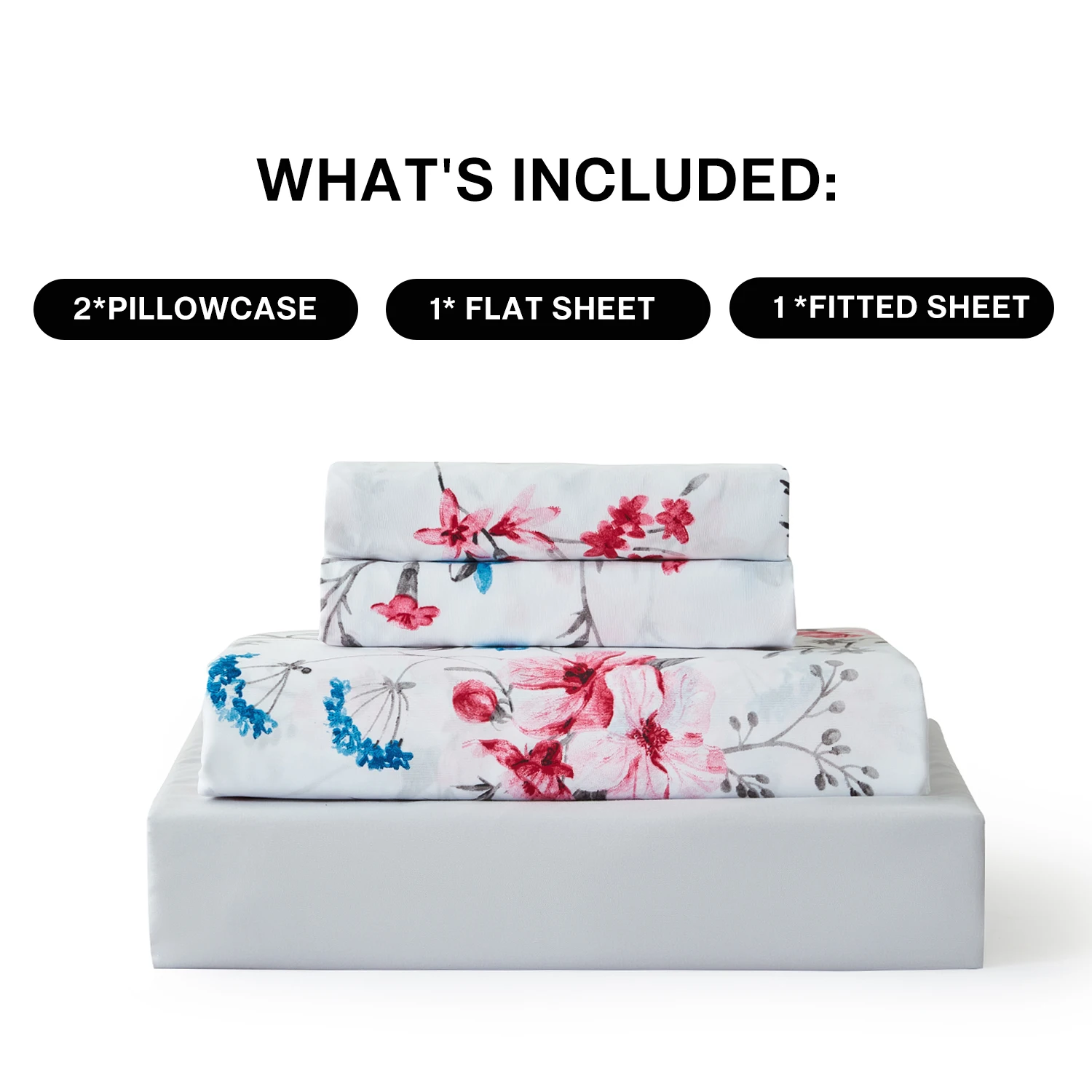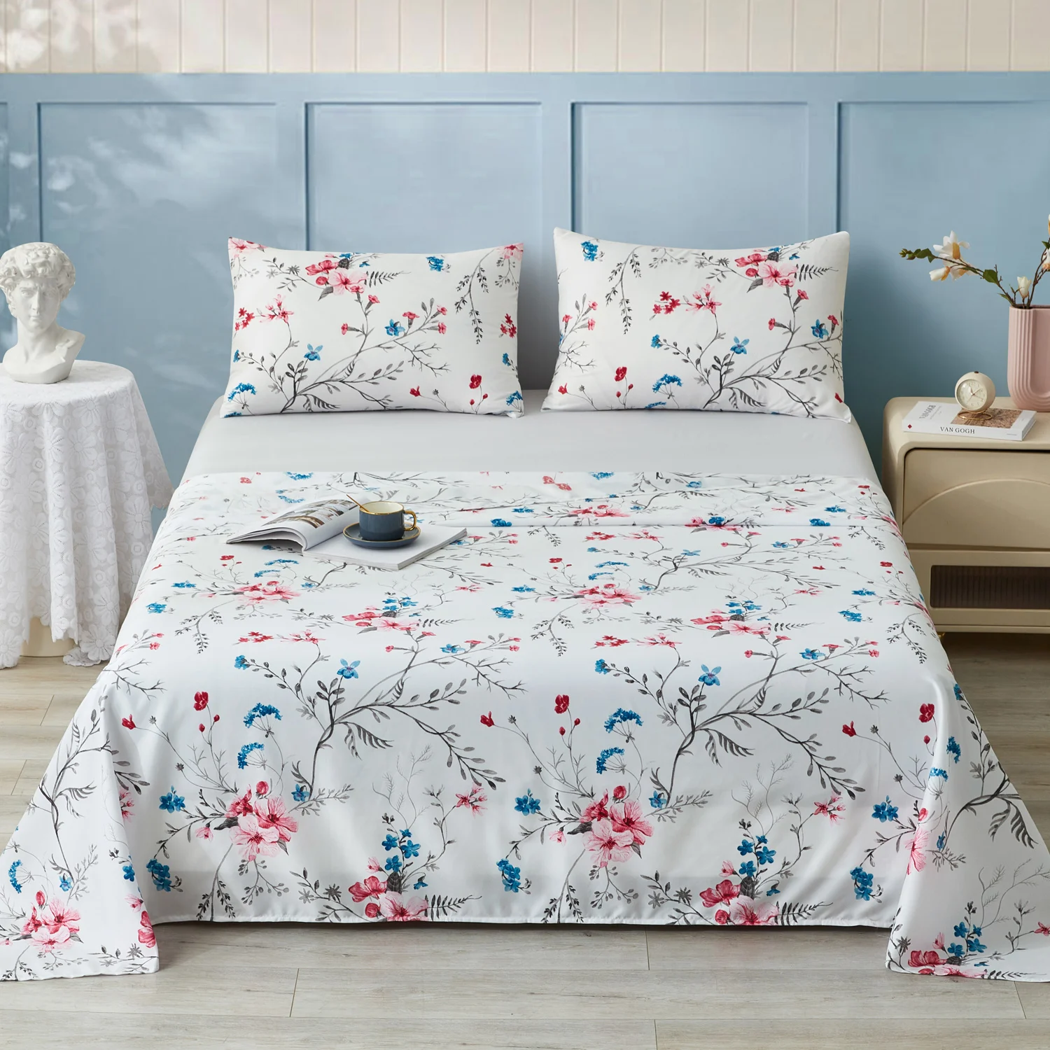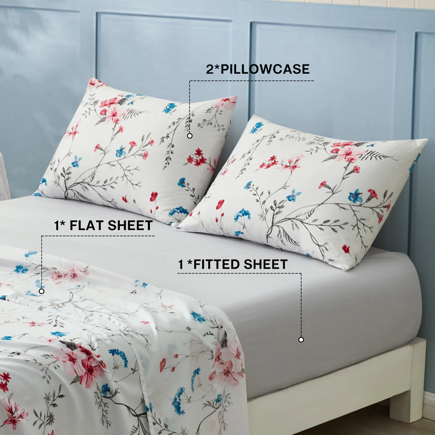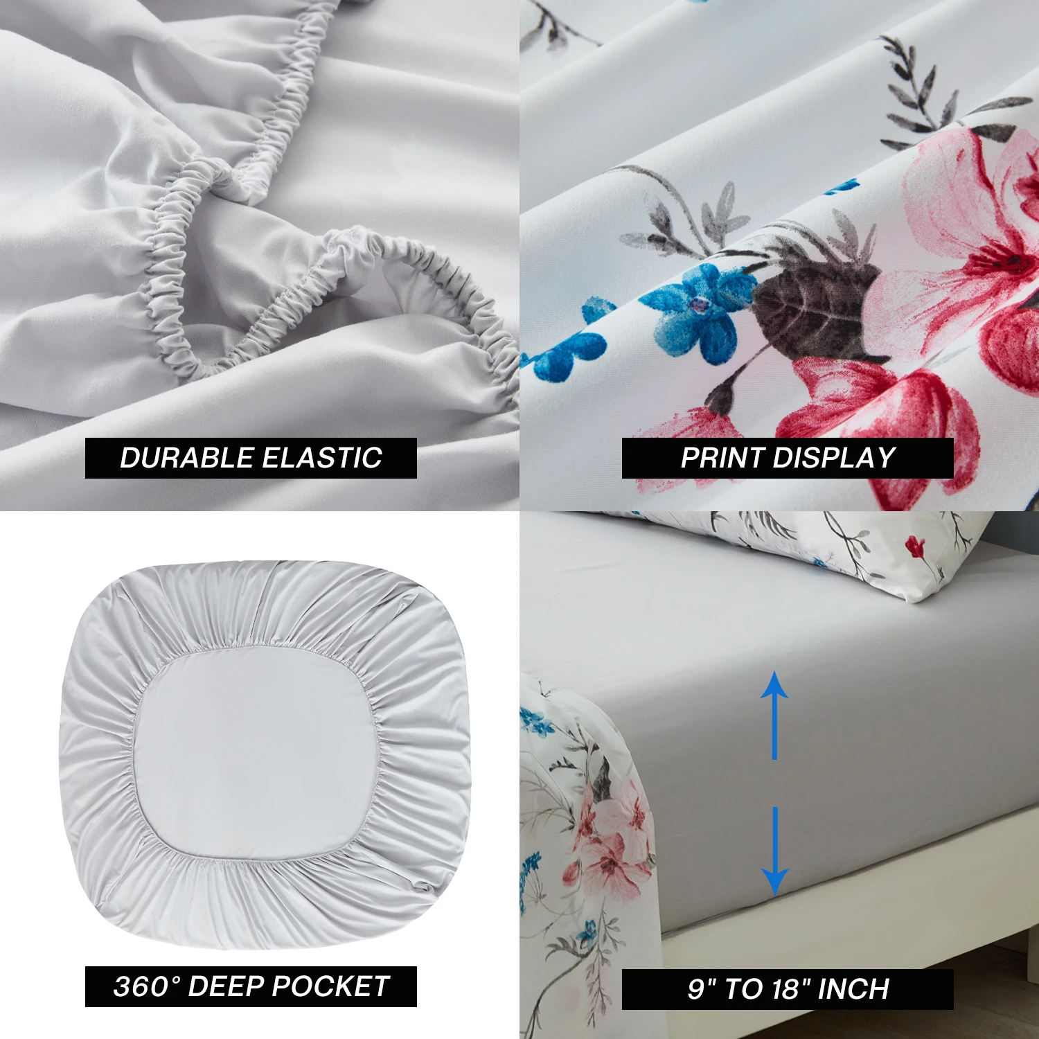 King Size Fitted Printed Bed Sheets Set of 4-Piece Sheets Polyester Microfiber Bedding Sheets 4 Pcs Set