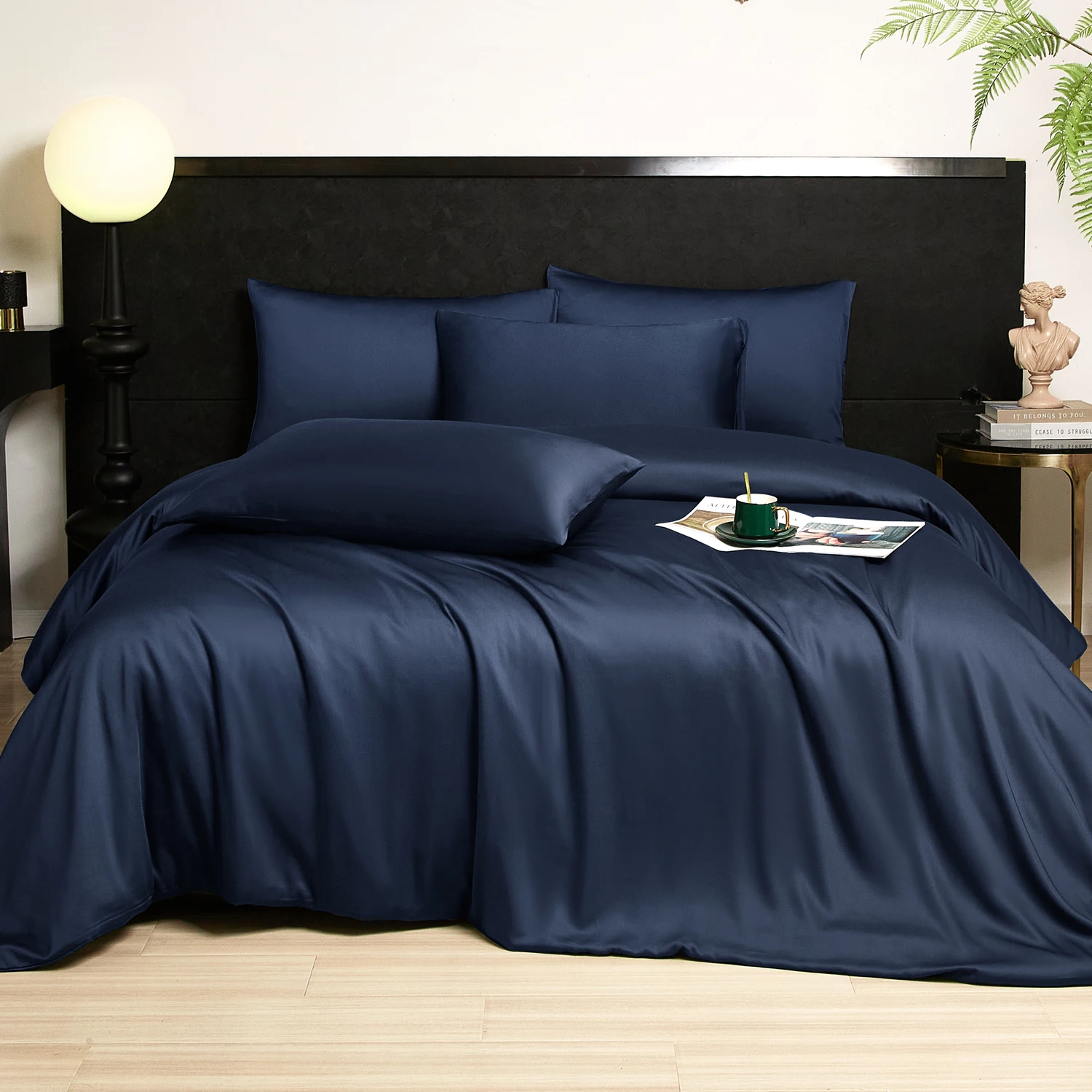100% Bamboo Fiber Woven Modern Solid Color Bedding Set Super King Size Includes Flat Bed Sheet Fitted Duvet Cover