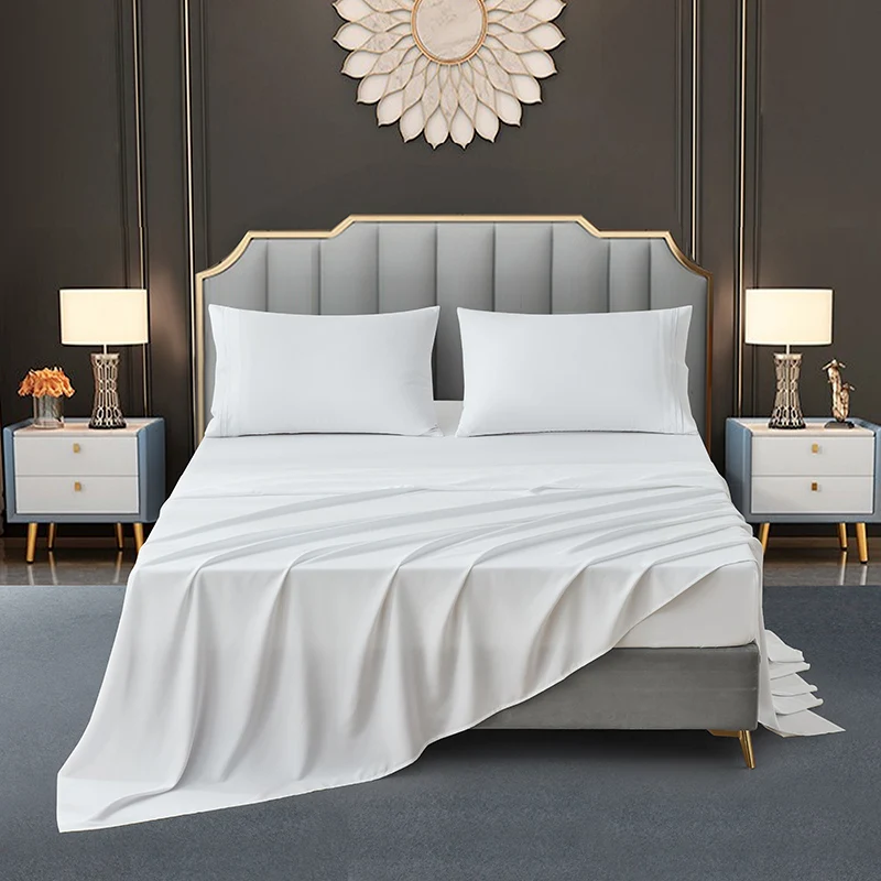 Luxury Wholesale Hotel Bedsheets Soft Fresh and Cool Bamboo Fabric White Bed Sheets Set