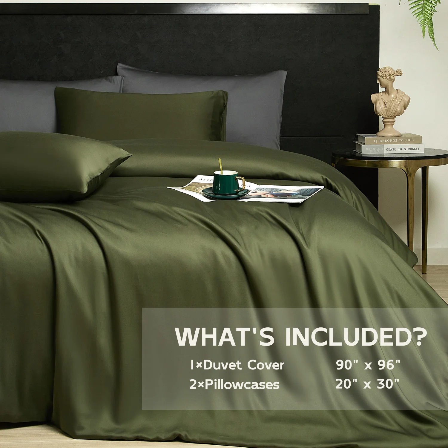 100% Bamboo Fiber Woven Modern Solid Color Bedding Set Super King Size Includes Flat Bed Sheet Fitted Duvet Cover