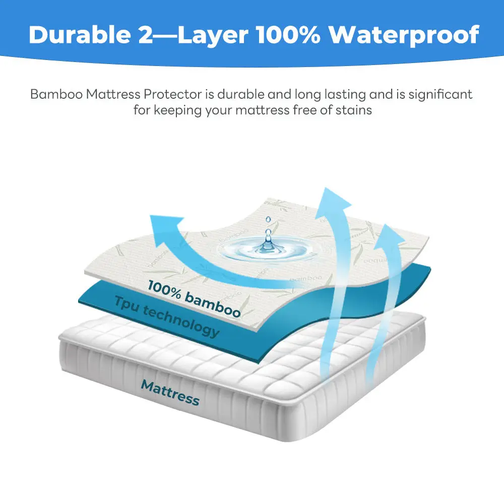 Luxury Bamboo Mattress Protector 100 Percent Waterproof Breathable Urine Resistant Mattress Cover King Size Fitted Sheet for Bed