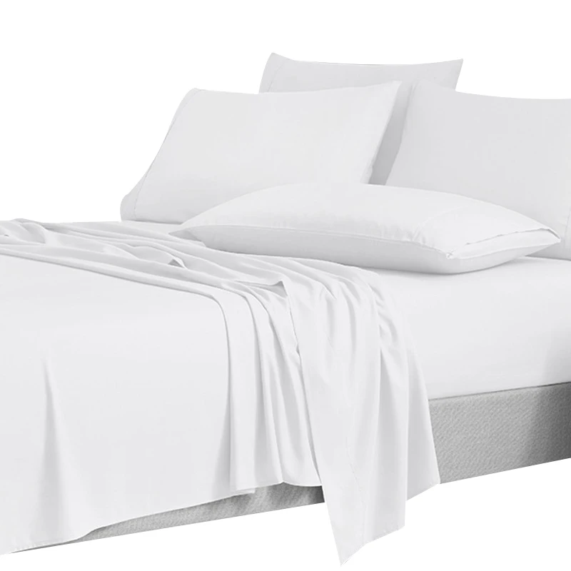 Wholesale Simple Solid White Luxury Bed Sheet Sets Bamboo/Polyester OEKO-TEX Certified Anti-Dust Mite Air-permeable Customizable