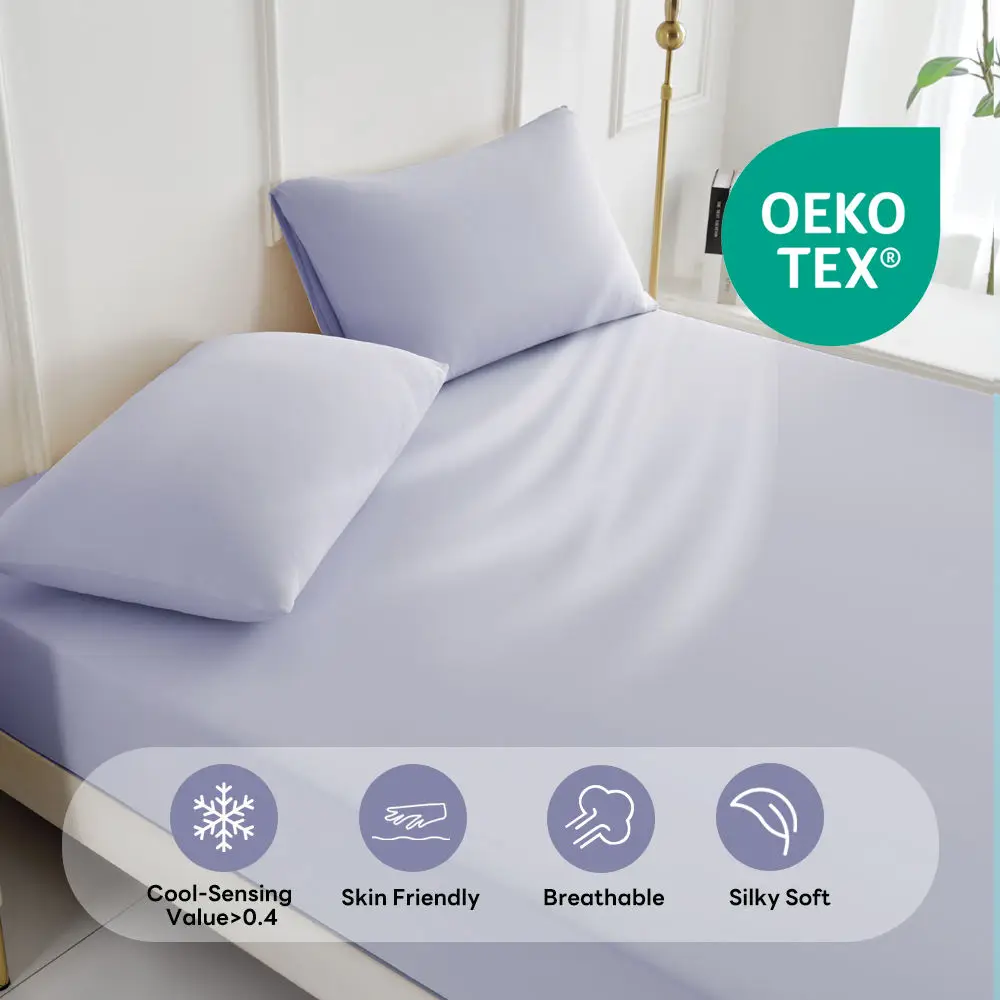 100% Bamboo Fiber Woven Modern Solid Color Bedding Set Super King Size Includes Flat Bed Sheet Fitted Duvet Cover