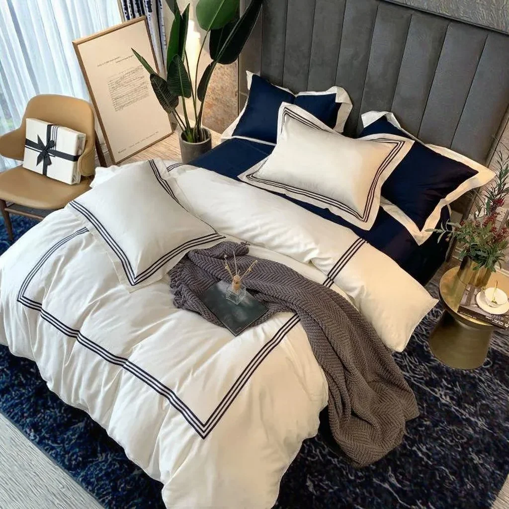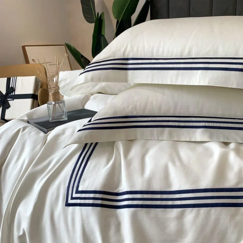 Wholesale 3pcs Luxury Sateen Cotton Bedding Set Embroidered OEKO-TEX Certified Woven Technique for Hotels and Home Use