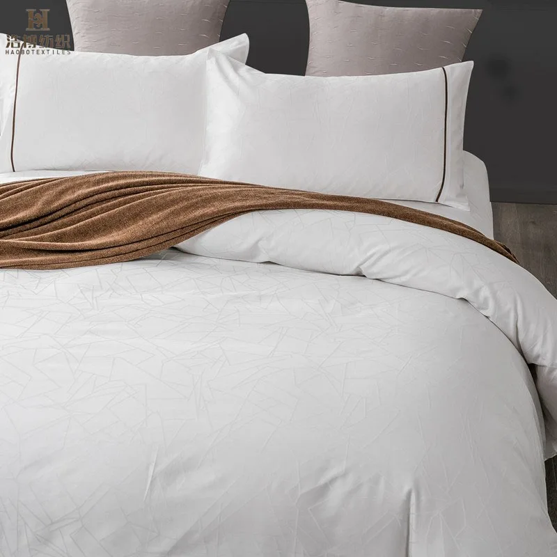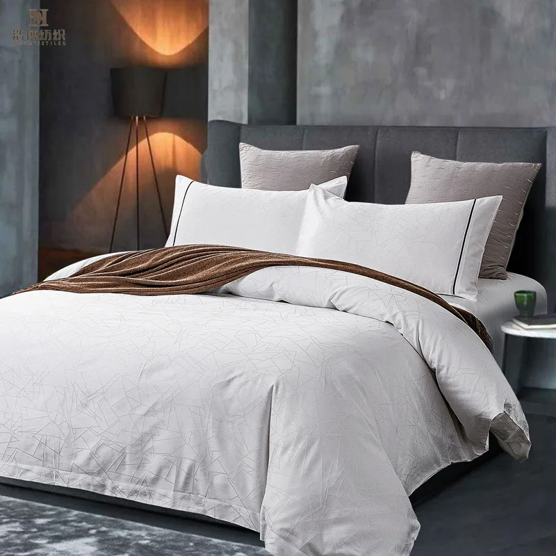 Dubai Market Luxury Geometric Jacquard 100% Cotton Comfortable Bedroom Sheets White Hotel Bedding Set