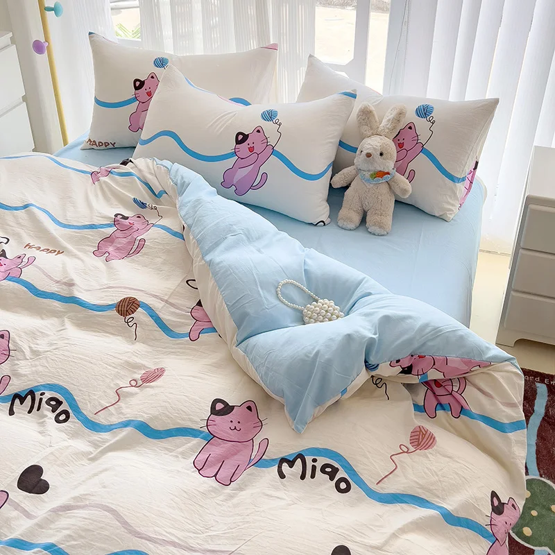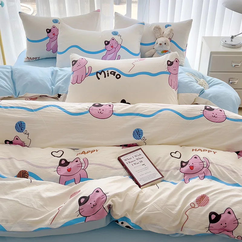 Hotel Quality Factory Supply Pink Cat 100% Polyester Duvet Cover 4 Pieces Bed Sheet Set Comforter Bedding Set