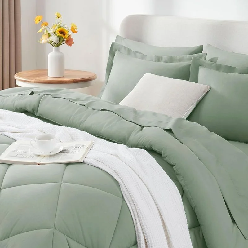 100% Bamboo Fiber Woven Modern Solid Color Bedding Set Super King Size Includes Flat Bed Sheet Fitted Duvet Cover