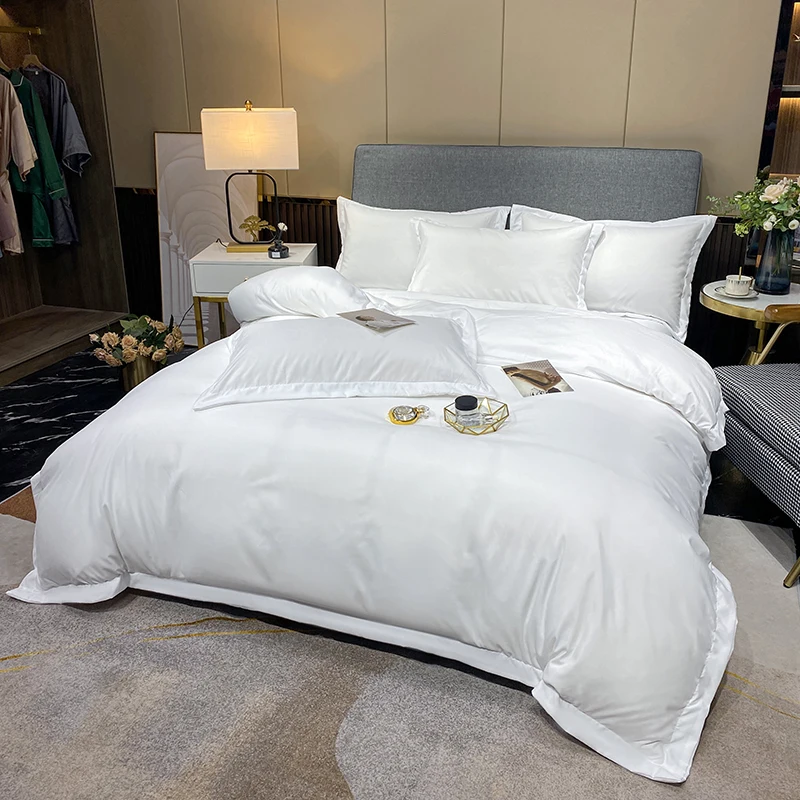 Eco Friendly Luxury Bamboo Fiber Bedding Set 4 Pieces Breathable Bed Linen for Hotel Use