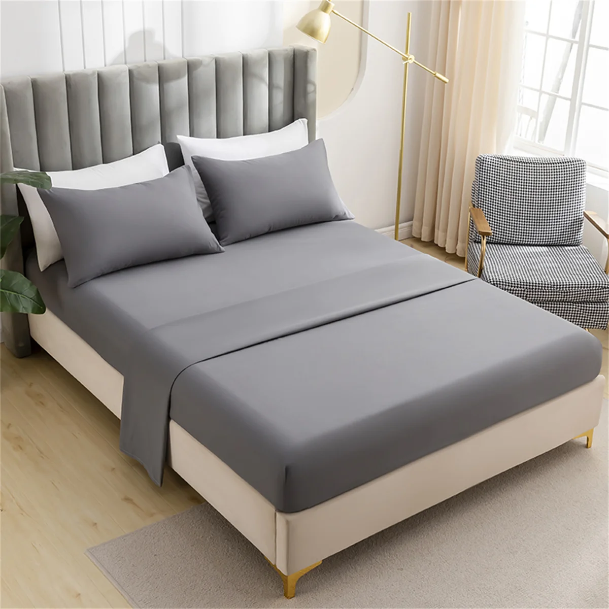 100% Bamboo Woven Modern Solid Color Bedding Set Flat Sheet Fitted Sheet Pillowcases 300tc Thread Count Wedding Four-piece Kit