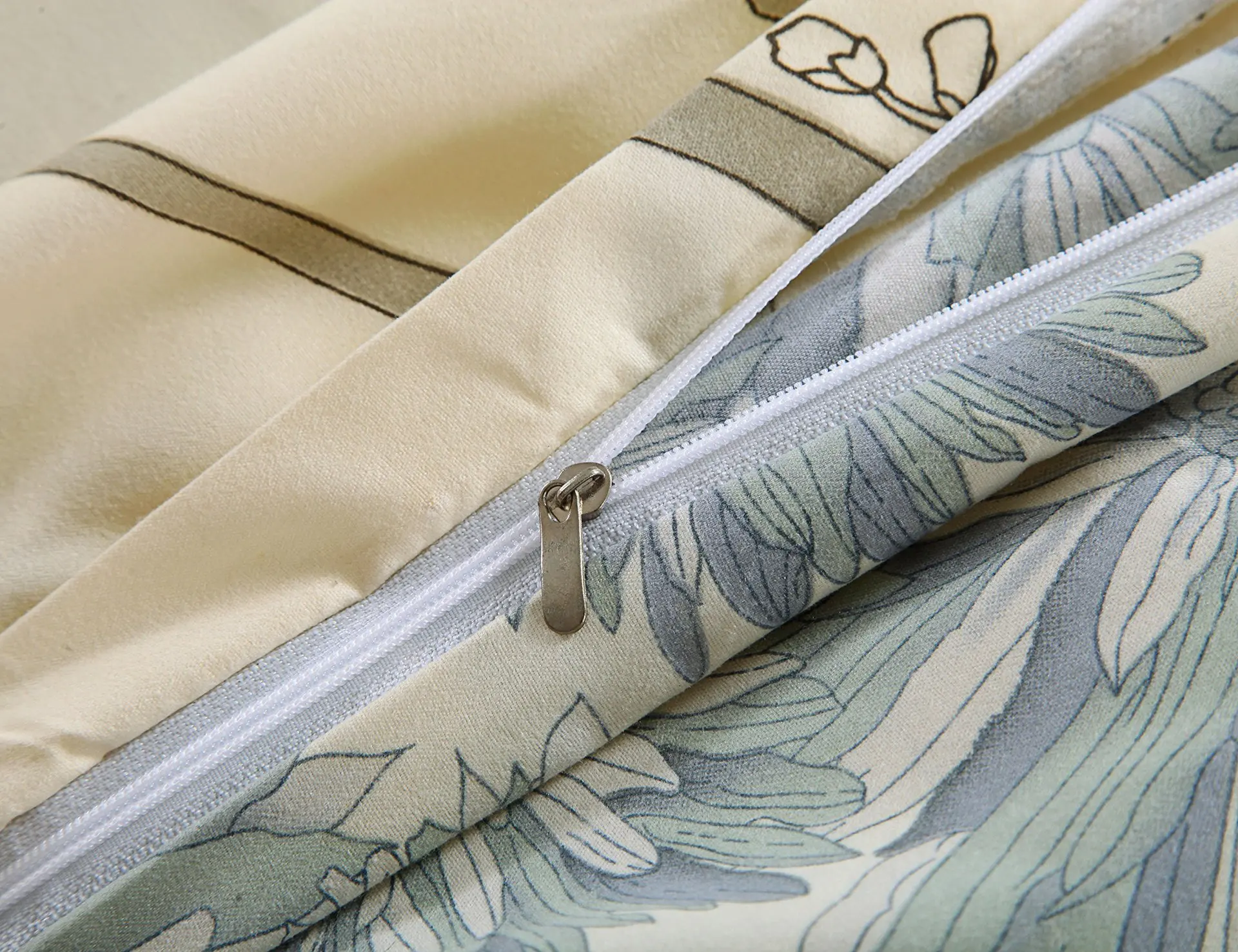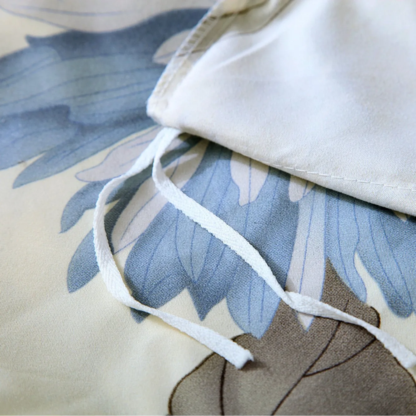 Skin-Friendly 3-Piece Duvet Cover Set with 2 Pillowcases Breathable Tropical Plant Floral Printed Polyester Bedding for Home Use