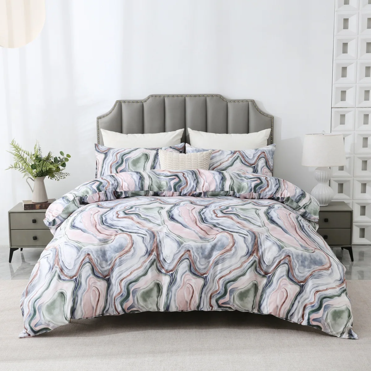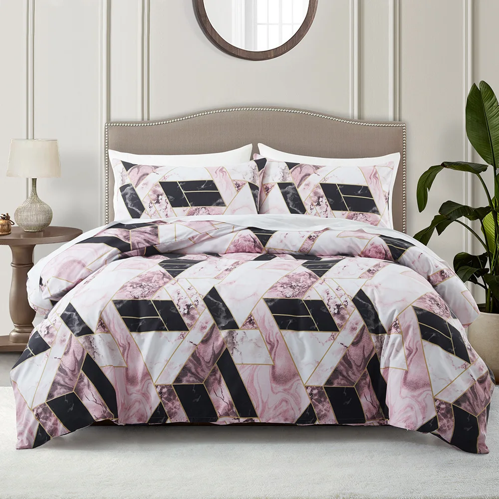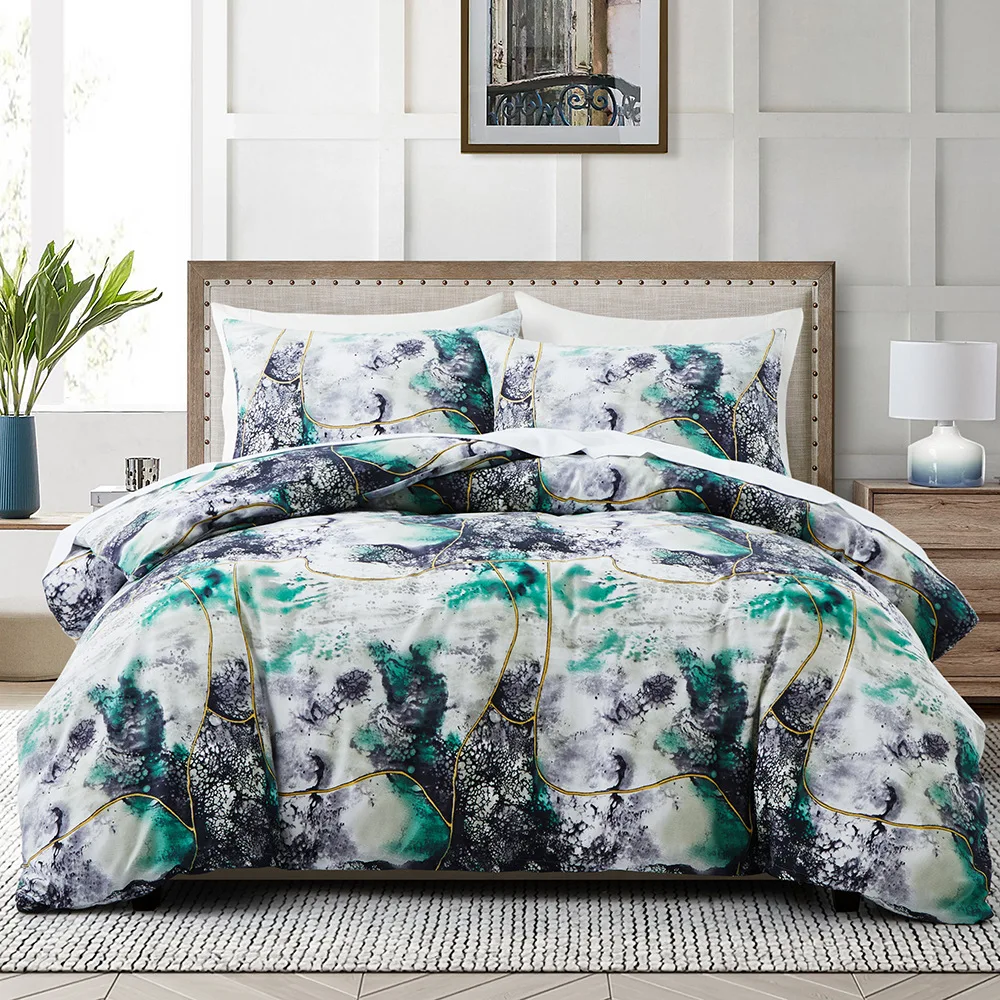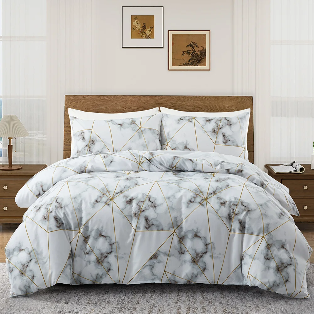 European American Style Queen Size 3-Piece Marble Printed Bedding Set Includes 1 Comforter Cover 2 Pillowcases for Bedroom Decor
