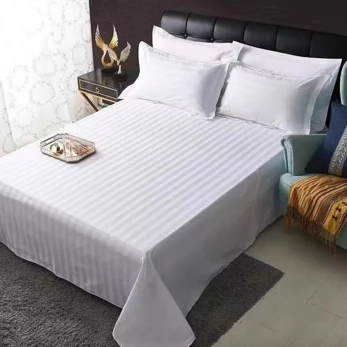 100% Cotton High Quality White Satin Striped Hometextile Fabric for Bedding Bed Sheet Star Hotel