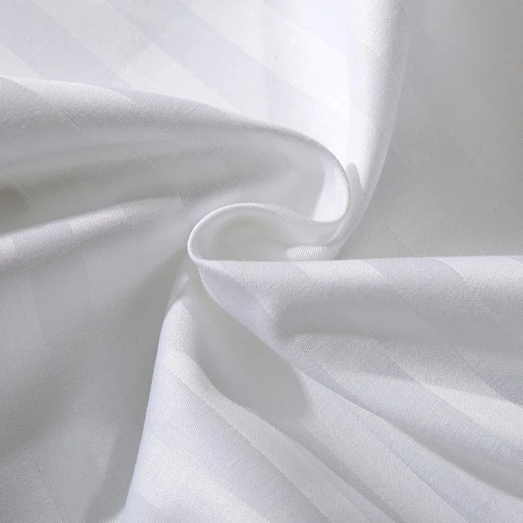 Wholesale 100%Cotton White 1cm/3cm Sateen Stripe 250TC Fabric for Bedding Set in Rolls