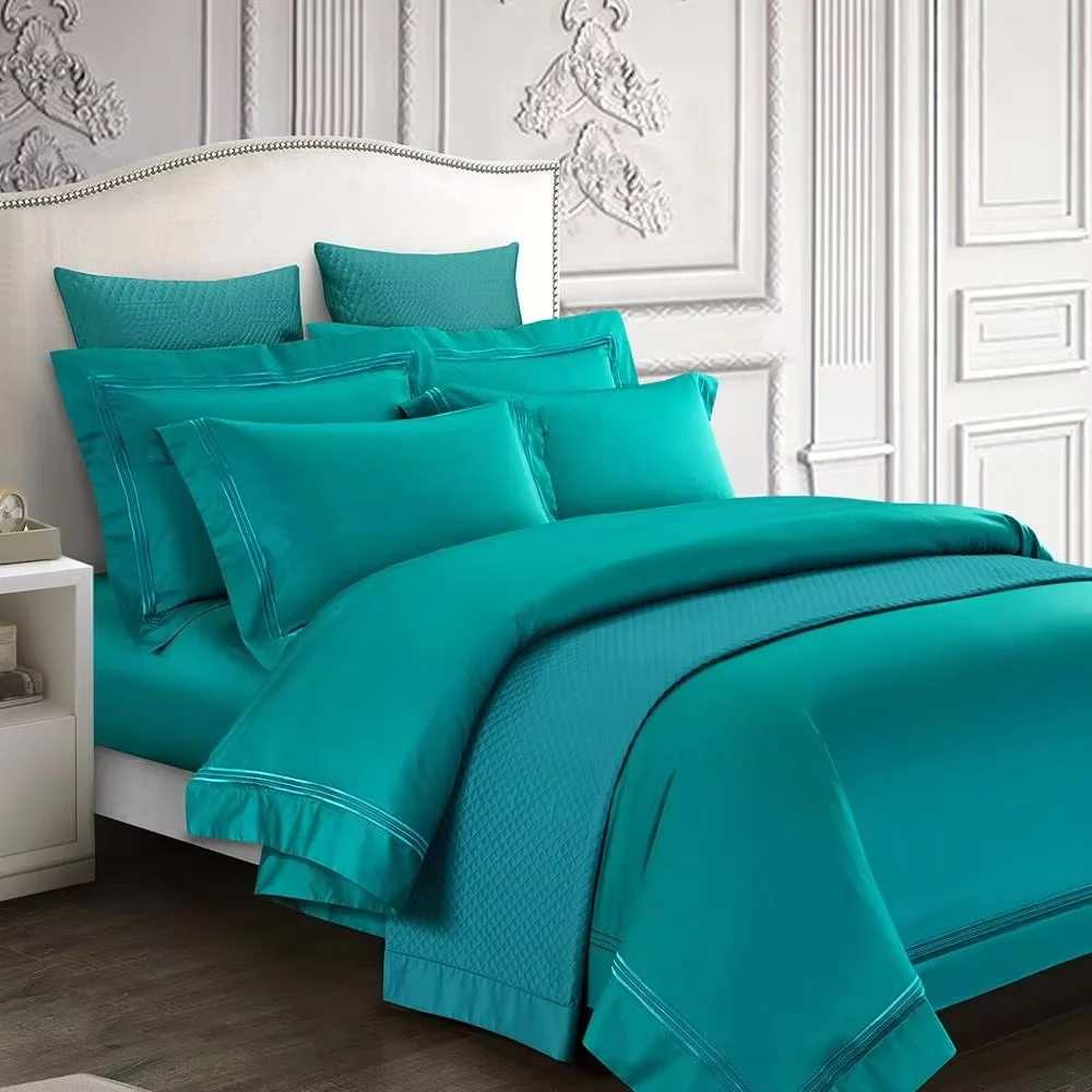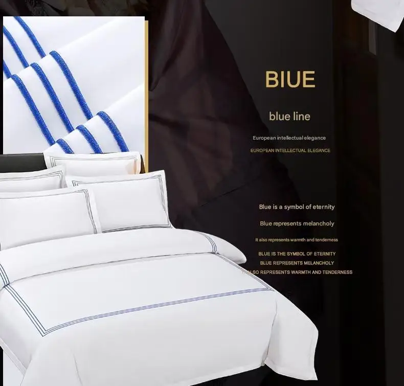 Custom Wholesale 100% Cotton Embroidery Star Hotel Linen Duvet Cover Flat Sheet Set Bedding Set