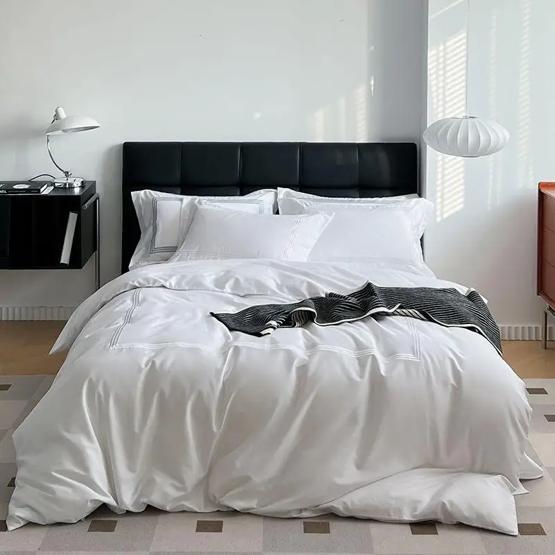 Eco Friendly Luxury Bamboo Fiber Bedding Set 4 Pieces Breathable Bed Linen for Hotel Use