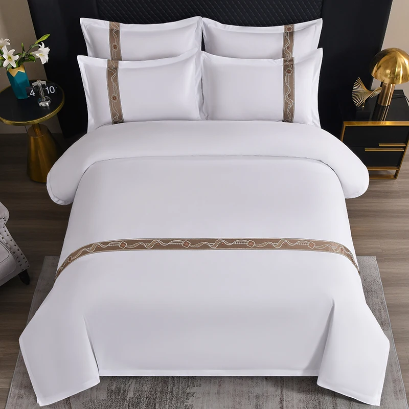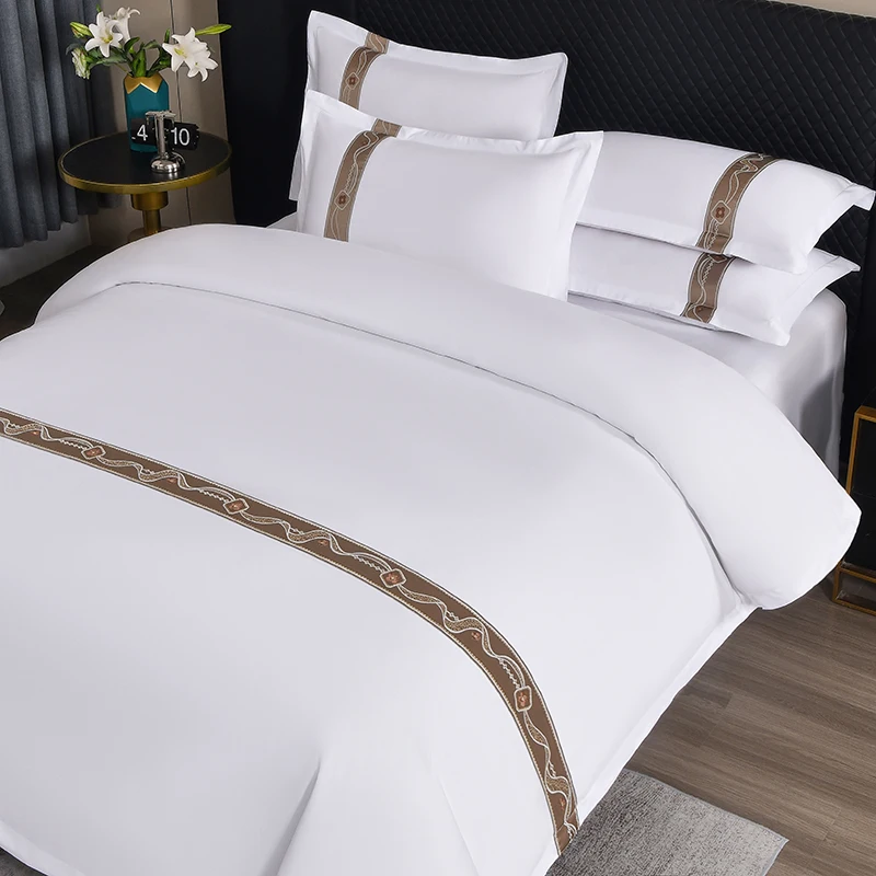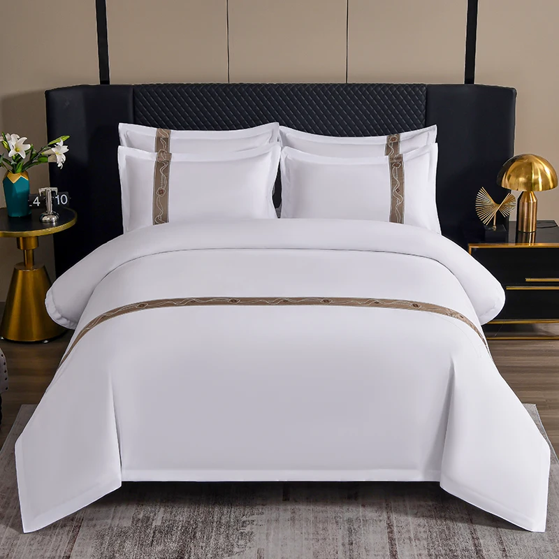 Custom Luxury Microfiber 4-Piece Hotel Linen Bedding Set Skin-Friendly Comforter Duvet Cover & Flat Sheet Factory Wholesale