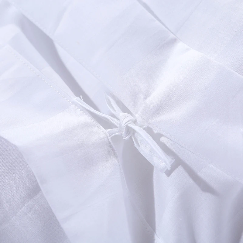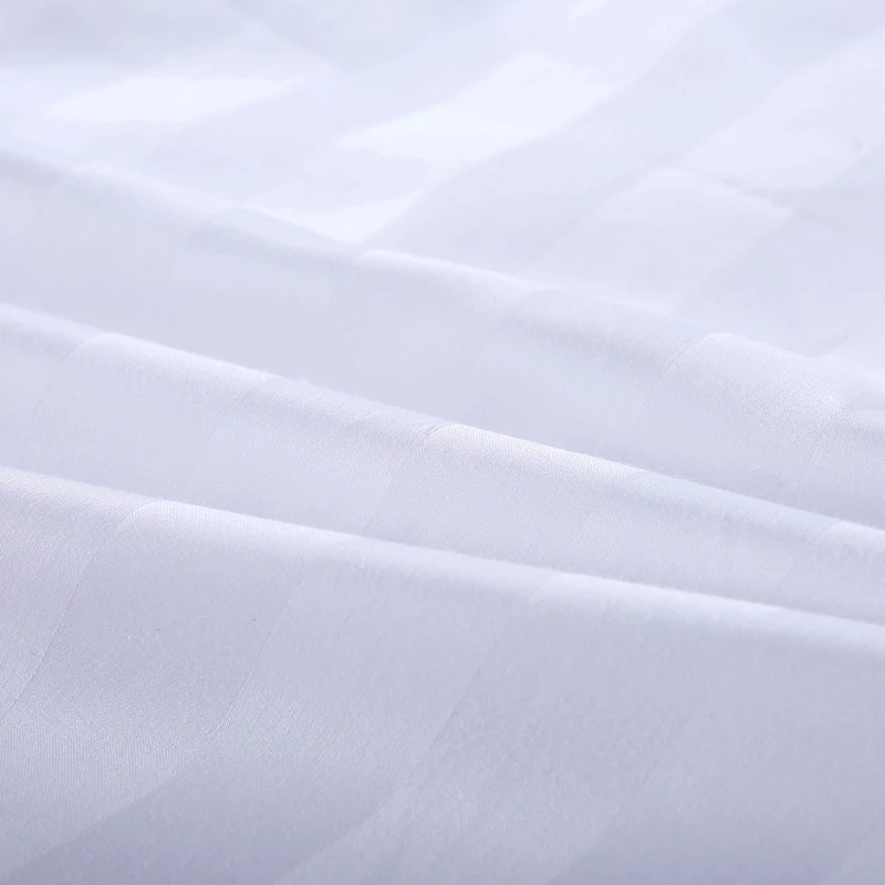 Custom White 100% Cotton 200TC Queen Size Bed Sheets 3cm Satin Stripe Plain Style Flat Sheet for Adults Home Hotels Hospitals