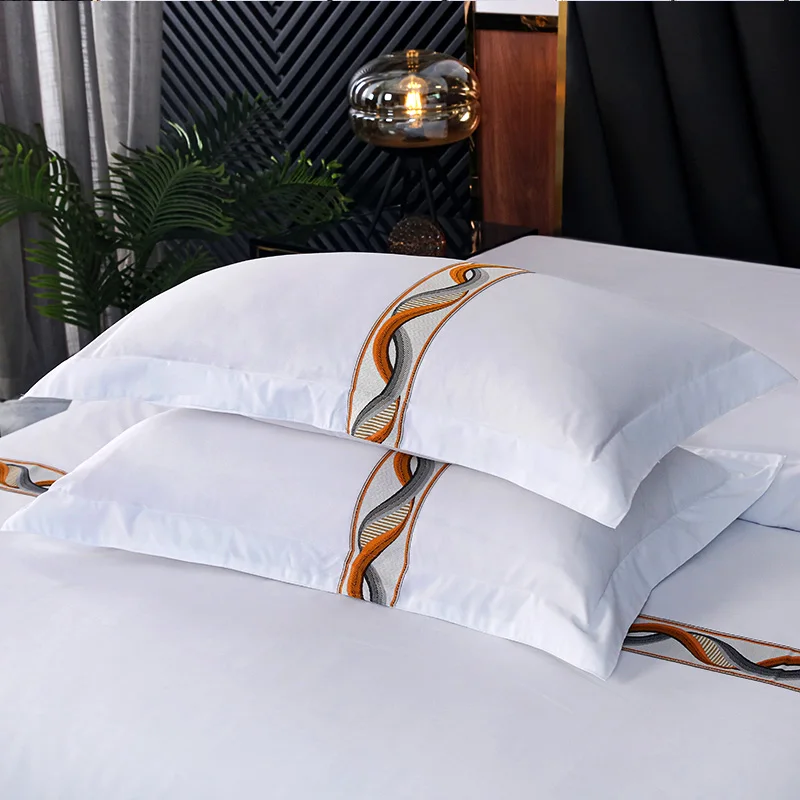 Custom 100% White Cotton Hotel Bed Linen Sheet 200tc-1000tc Embroidered Bedding Sets 4 PCS Woven Duvet Cover for 5 Star Hotel