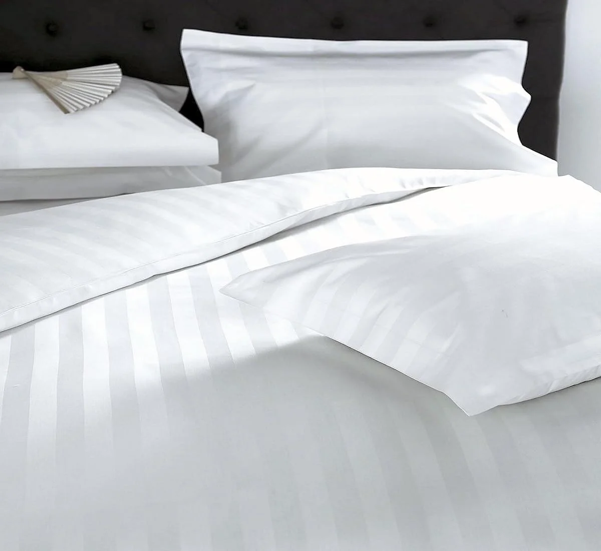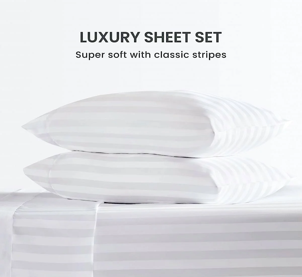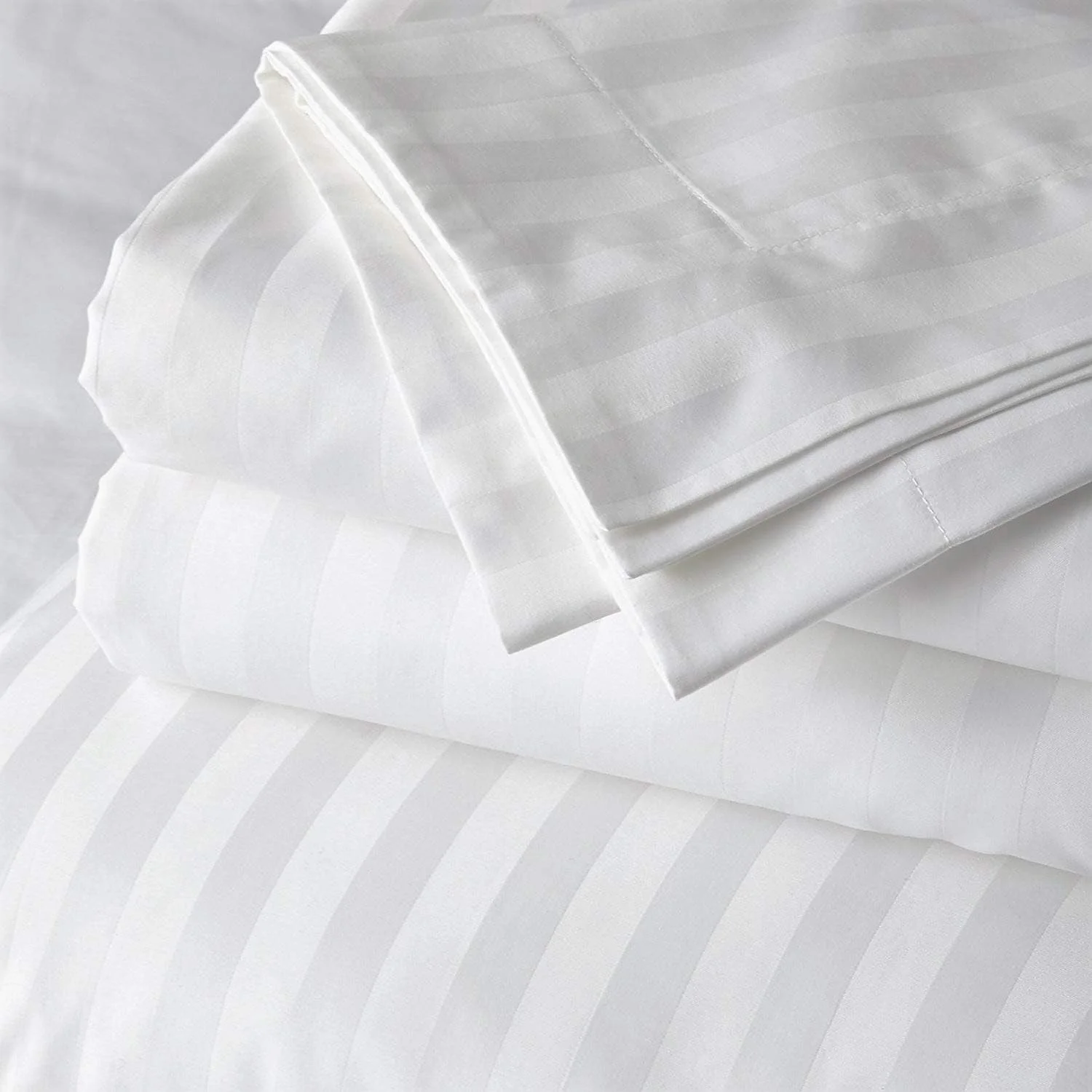 High Quality 100% Cotton Striped 200TC White Queen & King Size Flat Bed Sheet Set Quality Hotel Linen 4-Piece Bedding Set