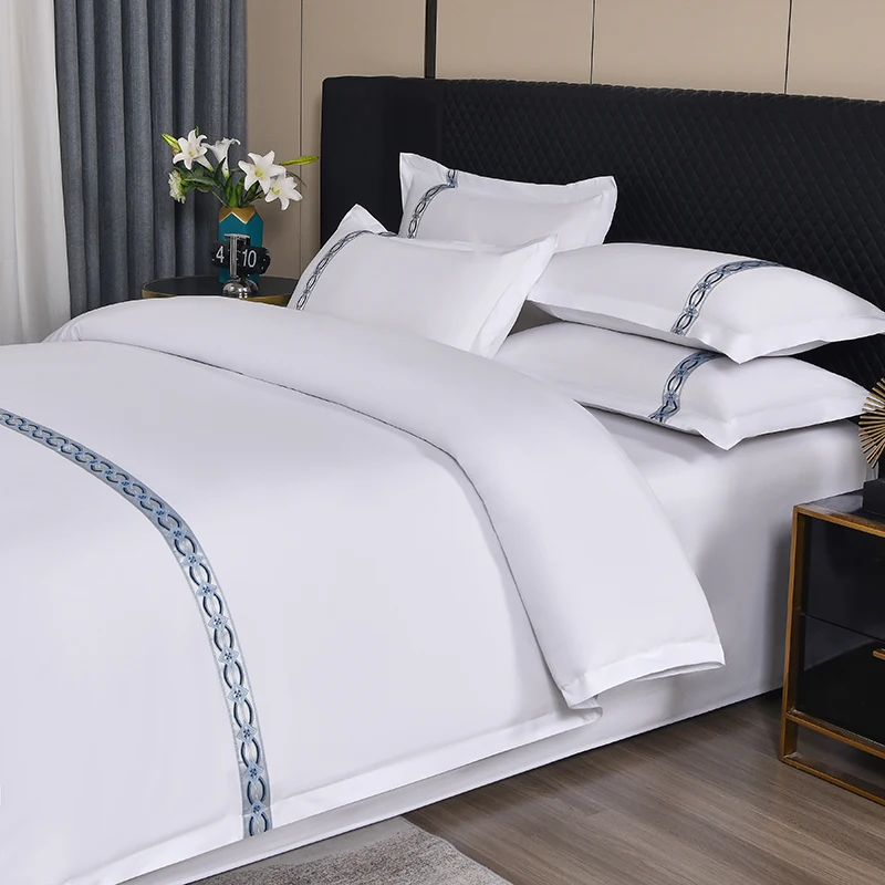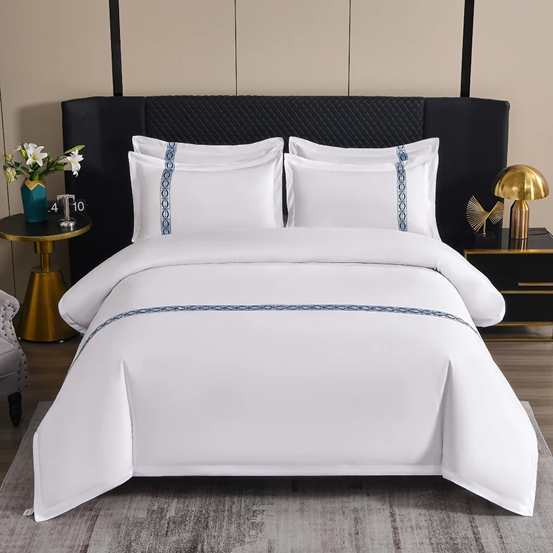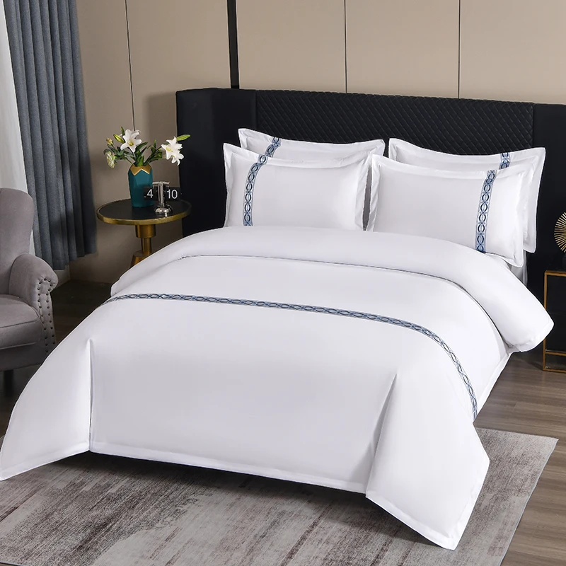 Wholesale Modern Luxury 4-Piece Bedding Set for 5 Star Hotels Skin-Friendly White Flat Bed Sheets Pillowcase Duvet Cover Woven