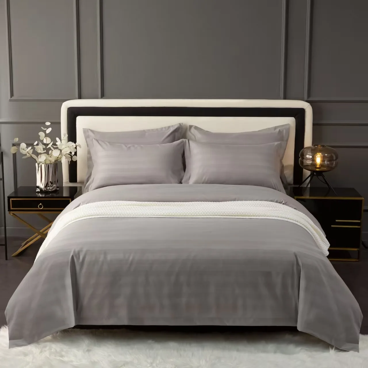 100% Bamboo Fiber Woven Modern Solid Color Bedding Set Super King Size Includes Flat Bed Sheet Fitted Duvet Cover