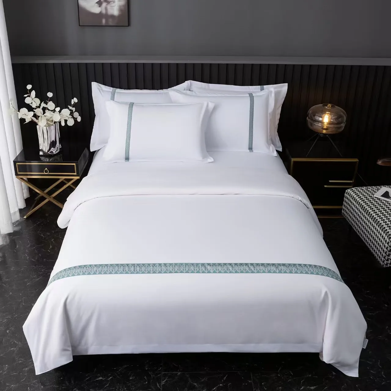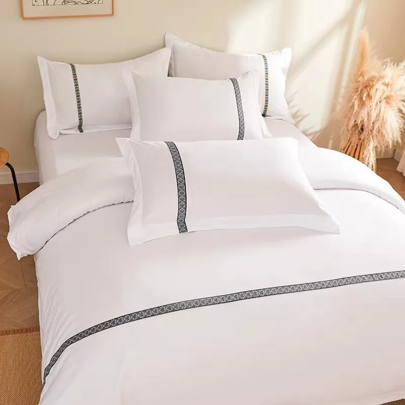 Factory Outlet 5 Star Hotel Linen White Luxury Soft 100% Cotton Plain Sateen Hotel Bedding Set Duvet Cover Hotel BedSheets