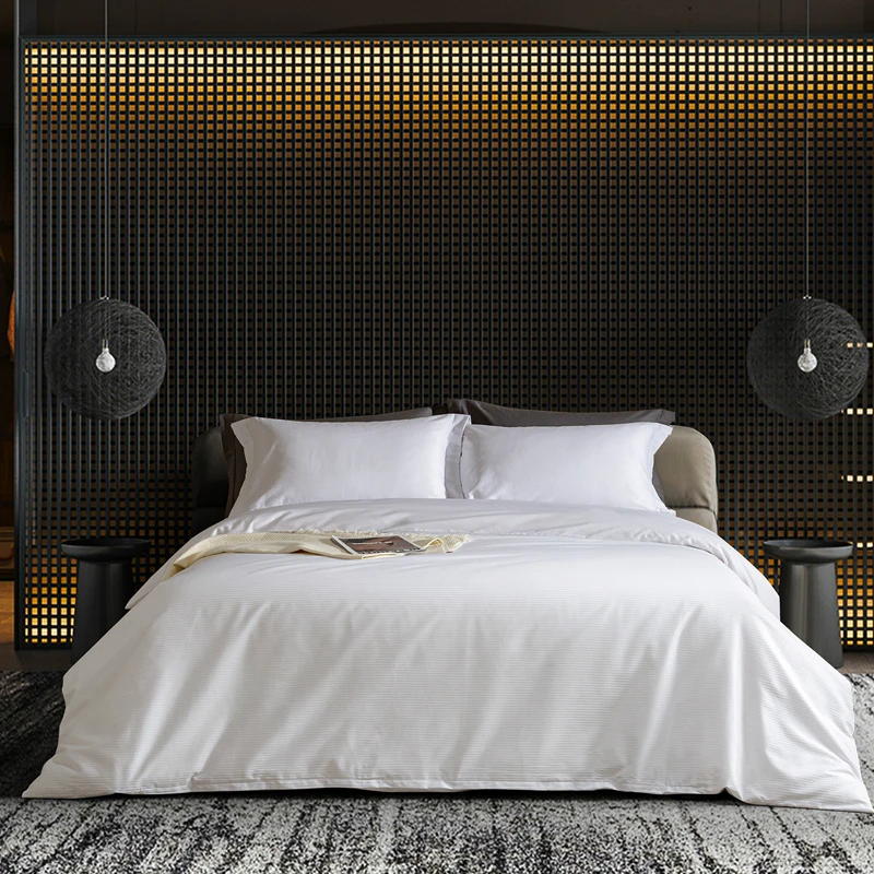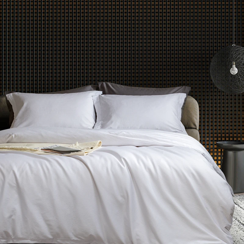 Wholesale Luxury 500 Tc Four-Piece Super King Size Hotel Bedding Set 100% Cotton Satin Sheets for Home Use