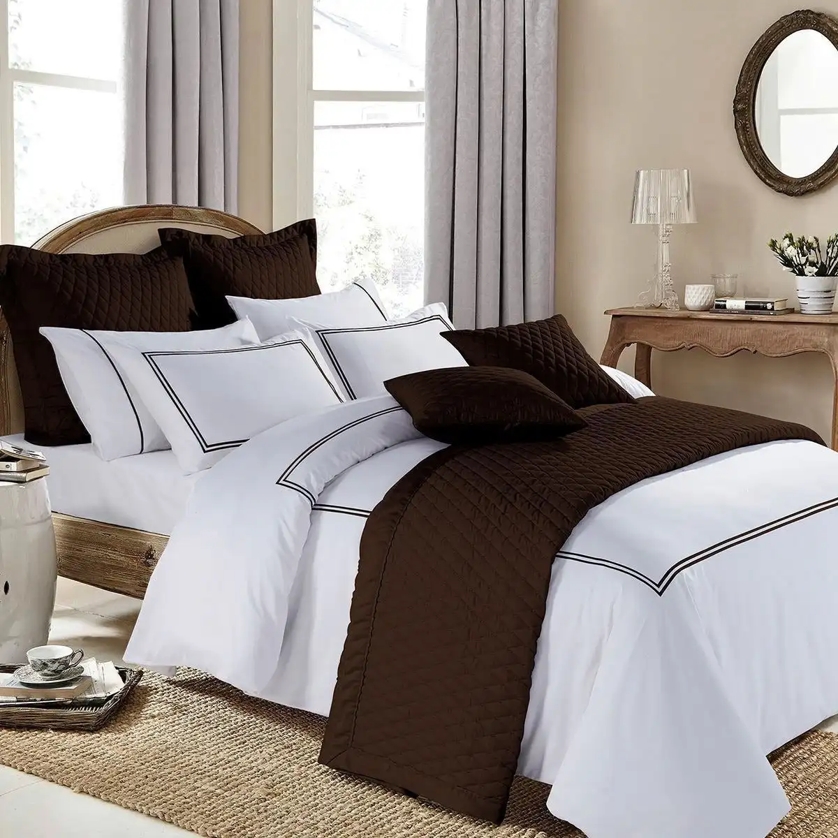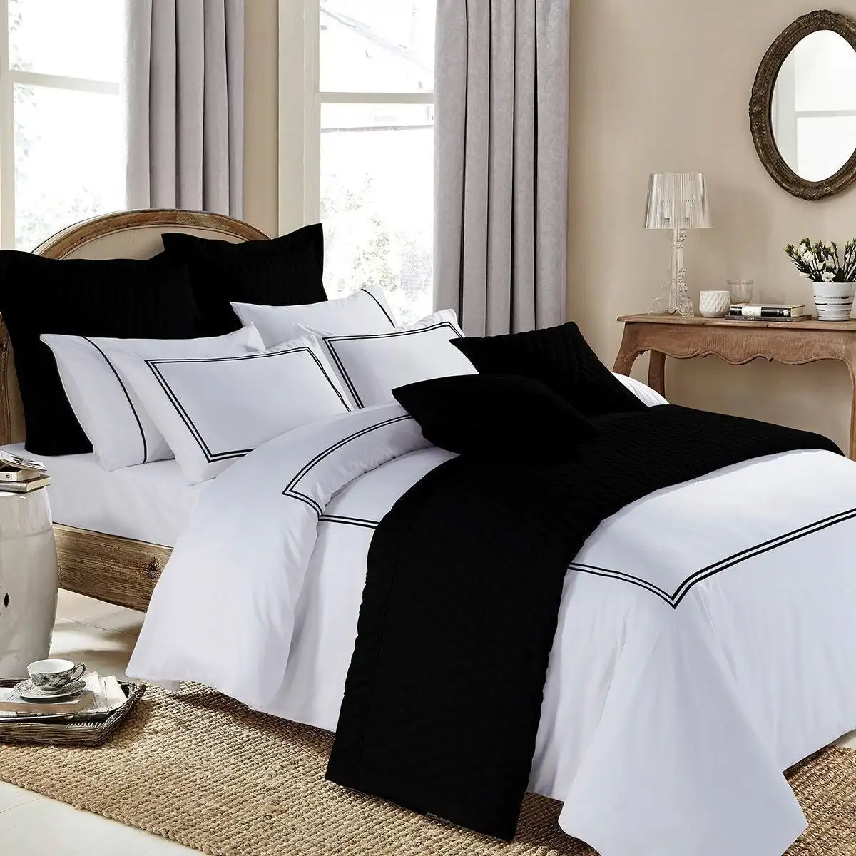 100% Bamboo Fiber Woven Modern Solid Color Bedding Set Super King Size Includes Flat Bed Sheet Fitted Duvet Cover