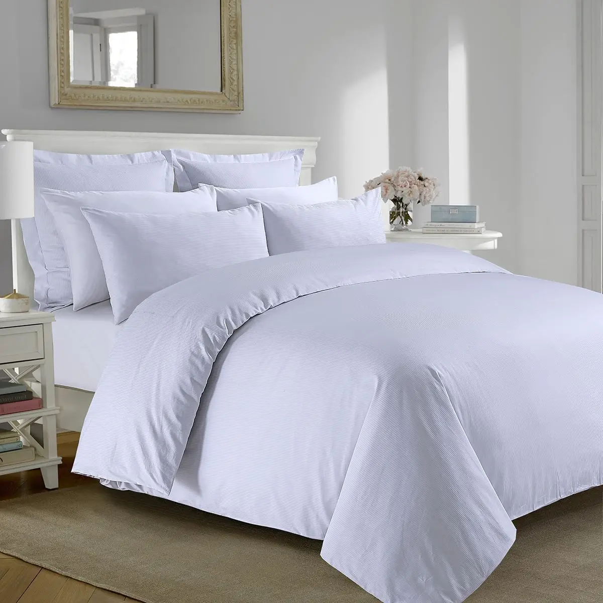 Wholesale 5 Star White 1/3cm Stripe100% Cotton Hotel Bedsheet White Hotel Duvet Bedding Set