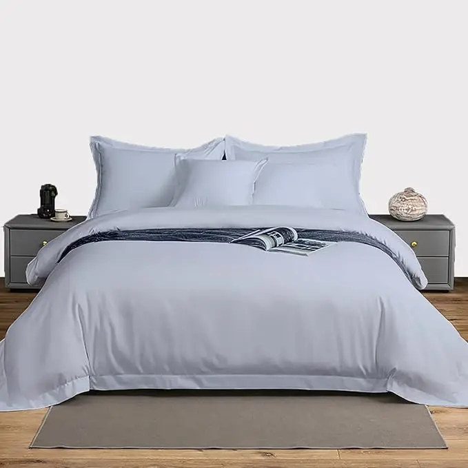 100% Bamboo Fiber Woven Modern Solid Color Bedding Set Super King Size Includes Flat Bed Sheet Fitted Duvet Cover