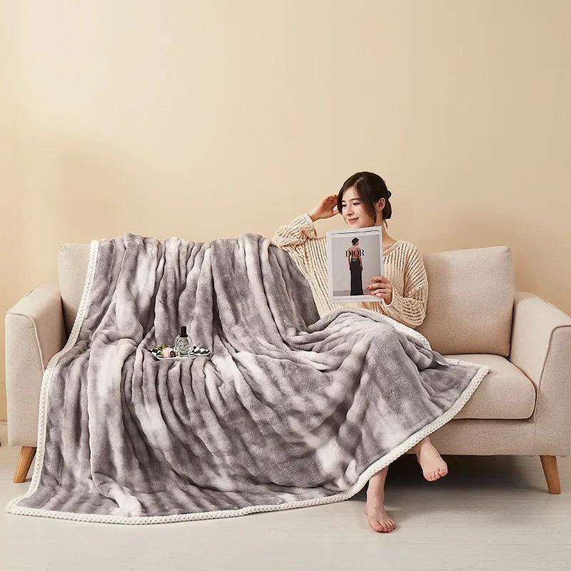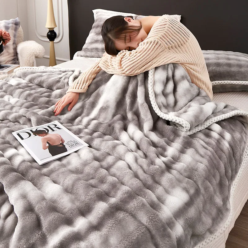 Luxury Fluffy Rabbit Bubble Faux Fur High Weight Fabric Plain Soft Winter Throw Blanket for Home Sofa Bed Winter Custom Travel