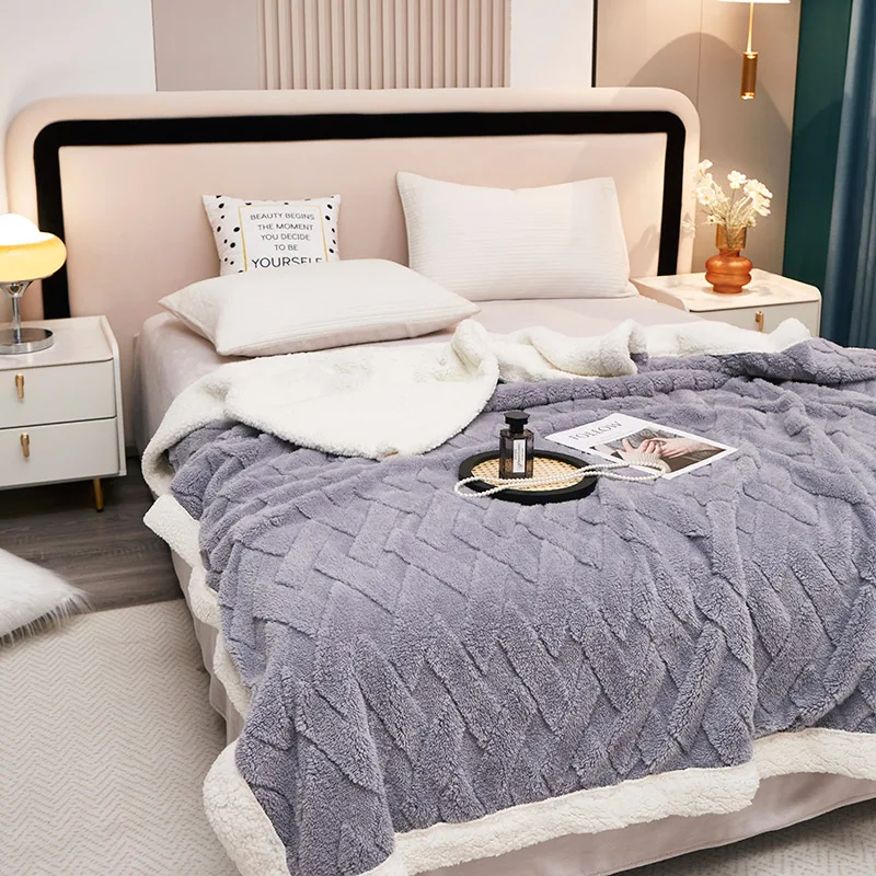 High Quality Tuff Fleece Throw Blanket Thickened Double Layer Sherpa Flannel Jacquard Bed Blankets Wholesale Cheap Sherpa Fleece