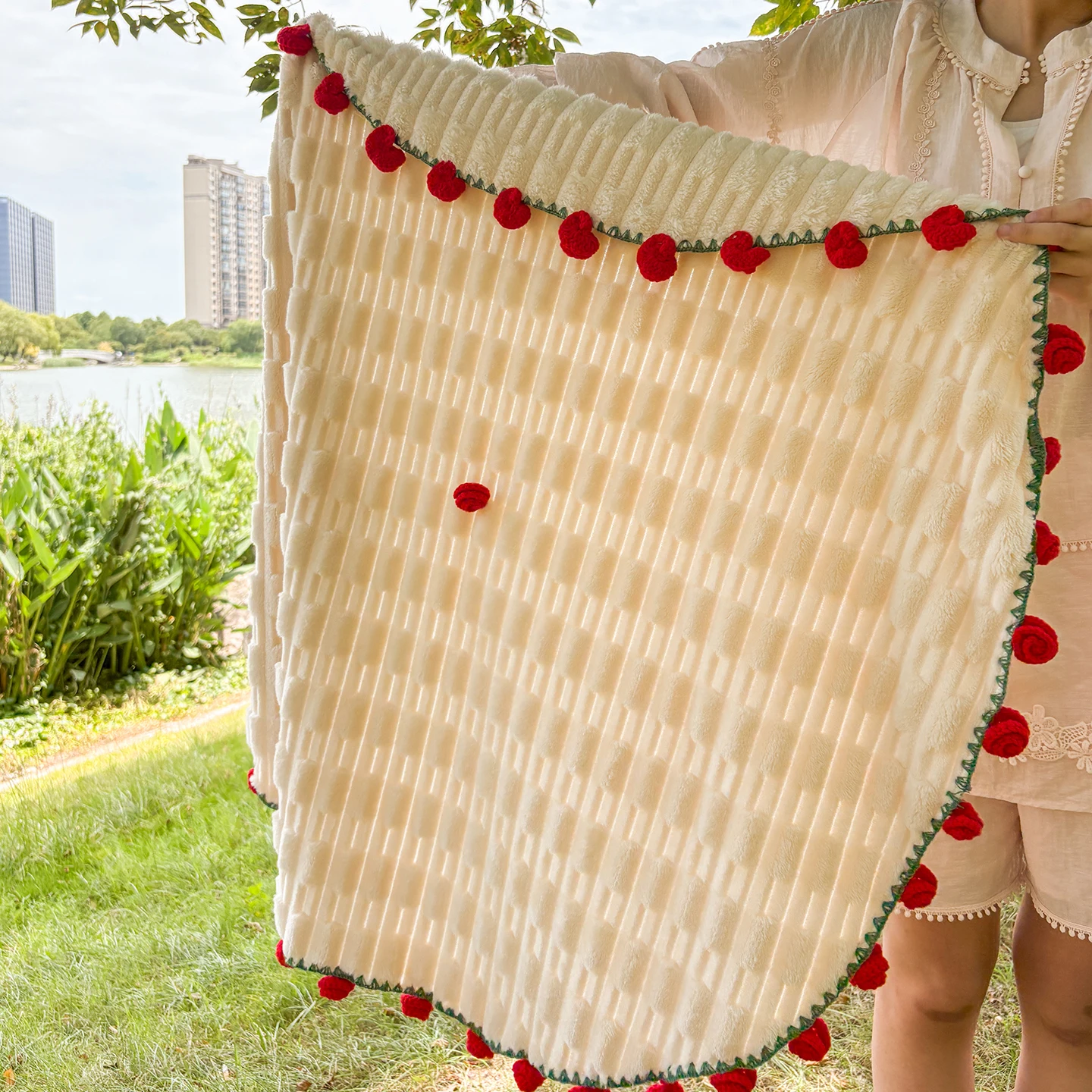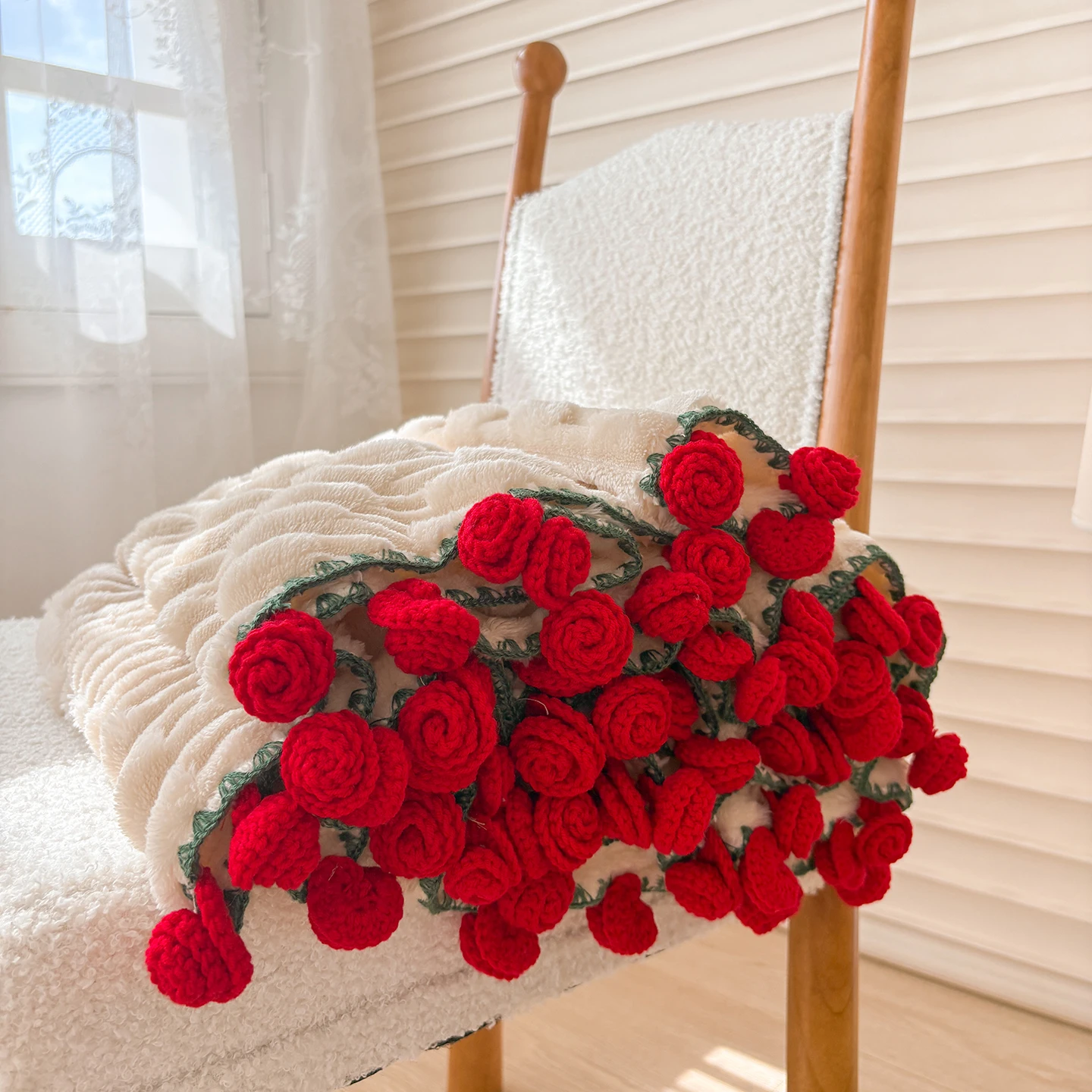 Luxury 3D Rose Bouquet Blanket Hand-Woven Ball Crochet Flower Home Decor and Bedding Gift for Valentine's Day for Girlfriend