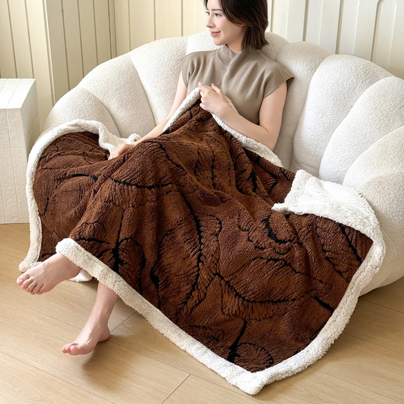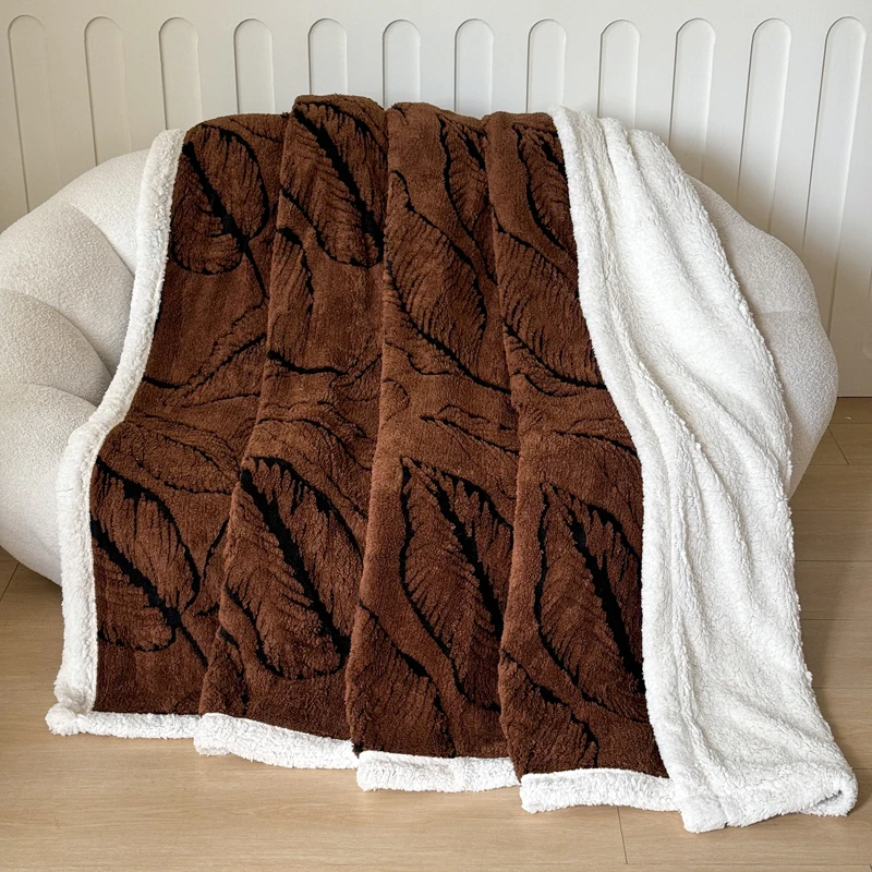 Cationic Dyeing Sherpa Jacquard Knitted Sherpa Throw Blanket for Couch Sofa Thick Cozy Warm Soft Blanket