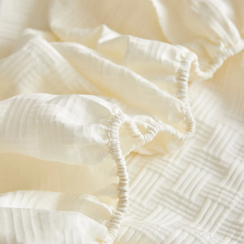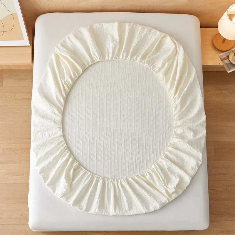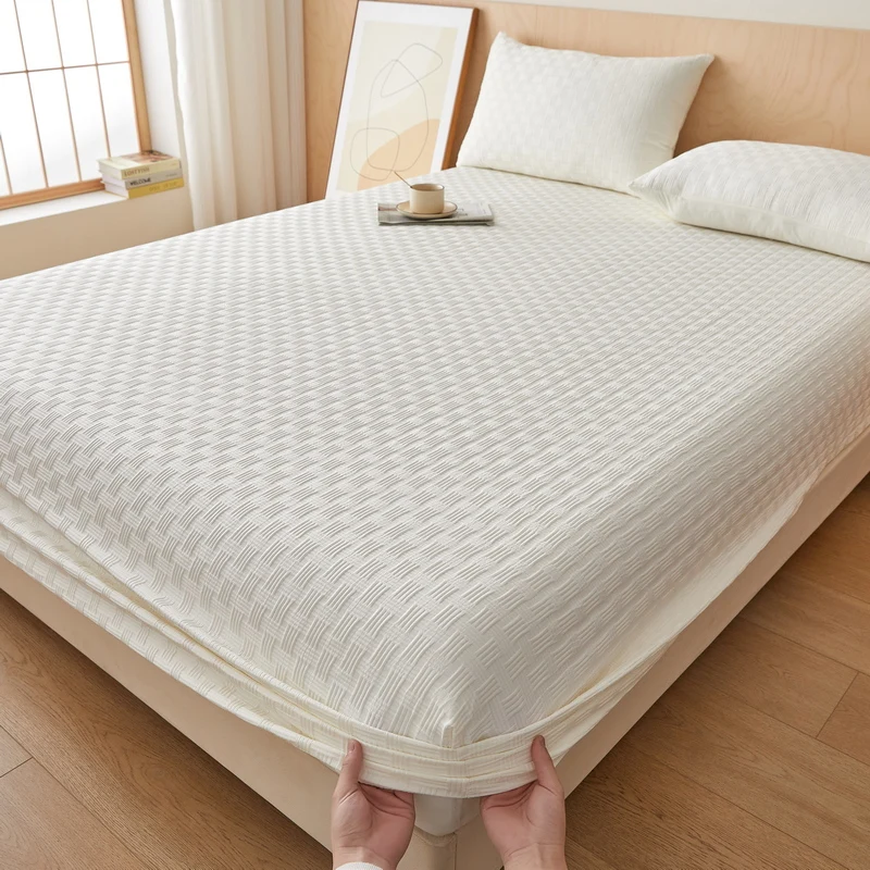 Waterproof Waffle-weave Mattress Cover Polyester Solid Color Deep Pocket Soft Fitted Sheet