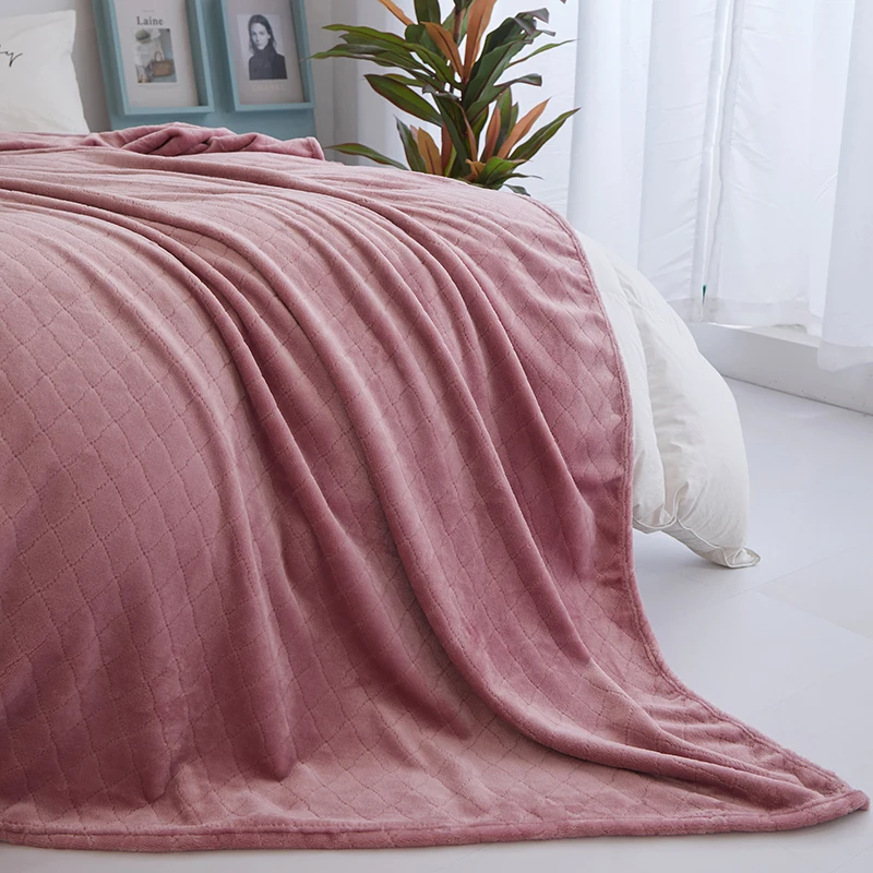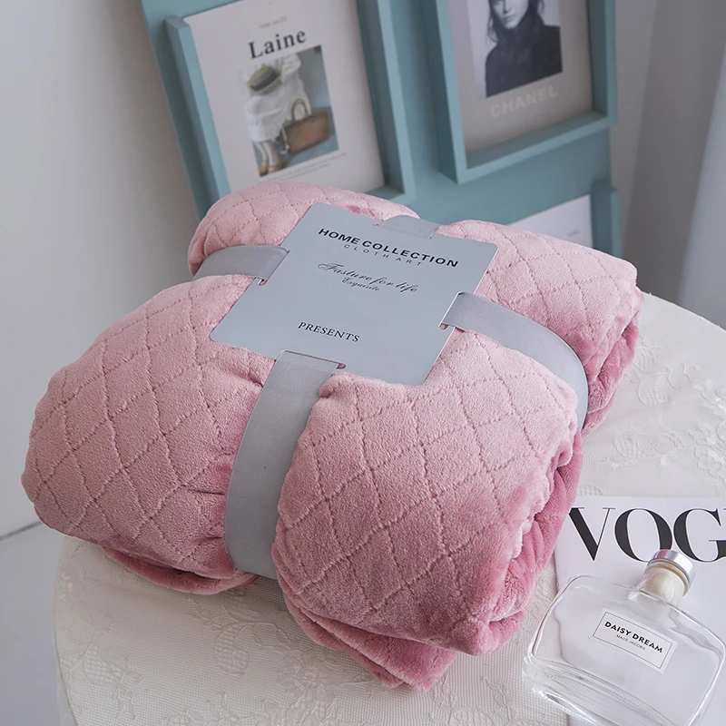 High Quality Super Soft Lightweight Solid Gift Sofa Bedding Polyester Cozy Flannel Fleece Throw Blankets for Home Decor