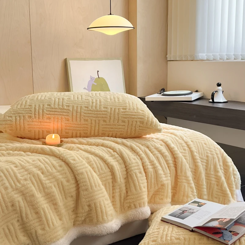 Wholesale Knitted Double Layer Reversible Throw Fluffy Sherpa Blanket for Sofa Couch