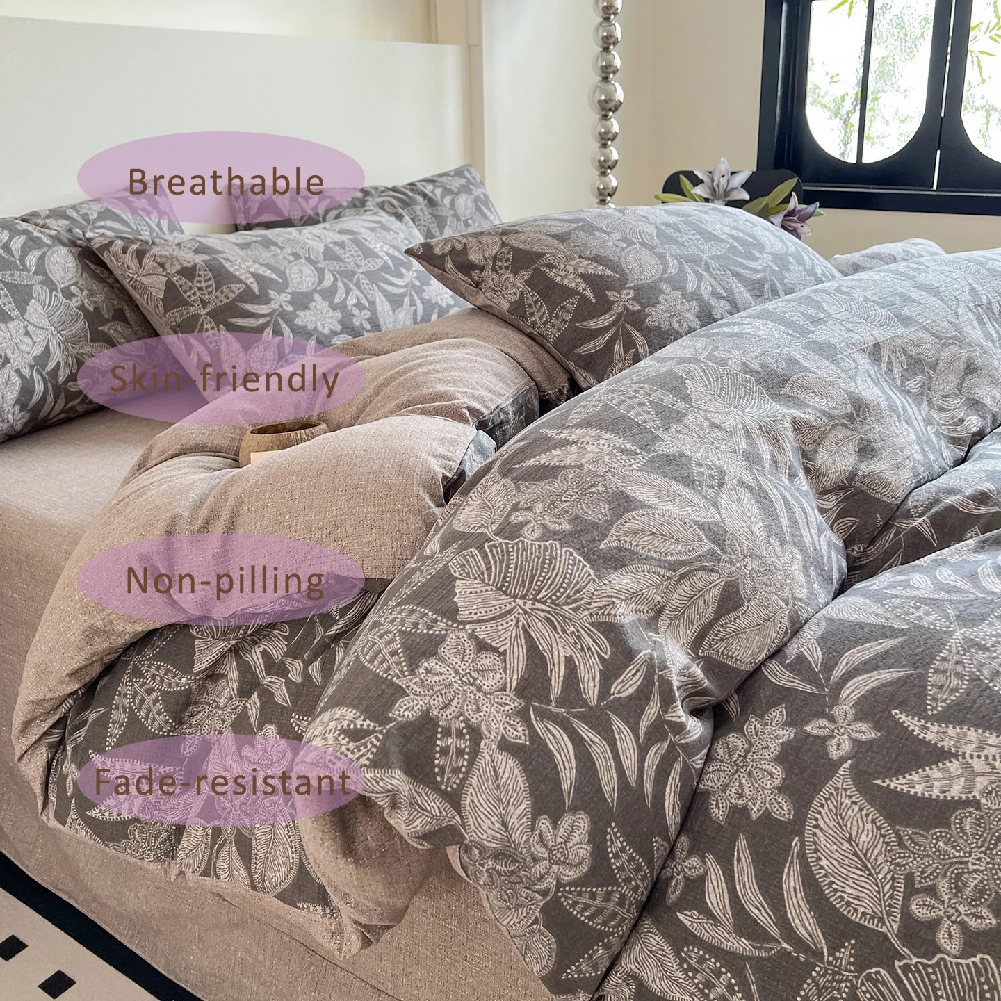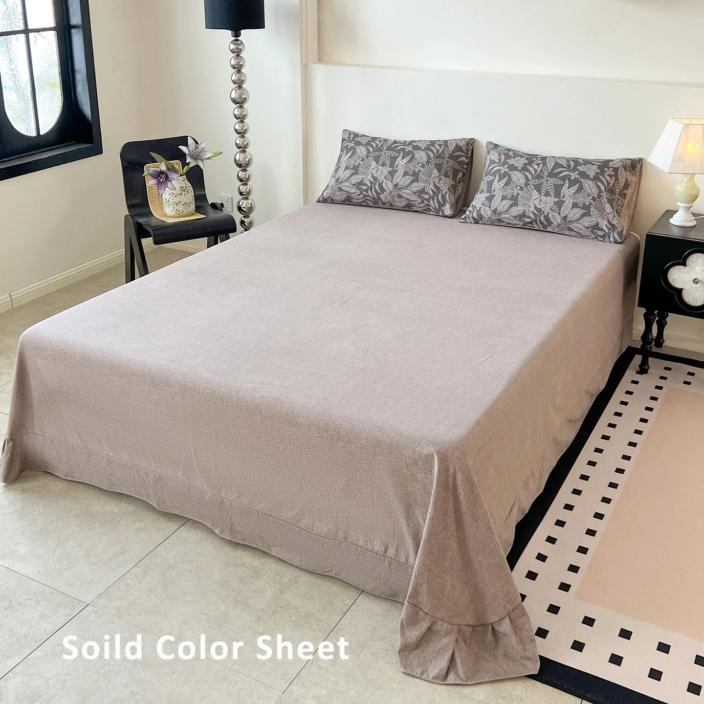 100% Bamboo Fiber Woven Modern Solid Color Bedding Set Super King Size Includes Flat Bed Sheet Fitted Duvet Cover