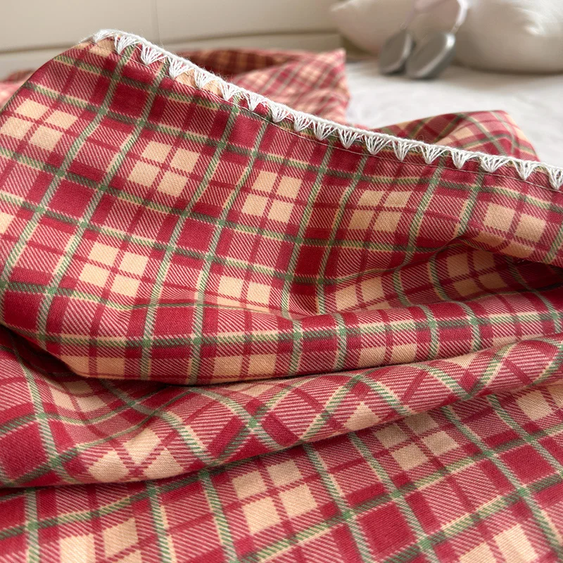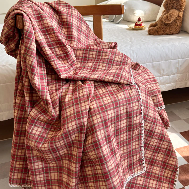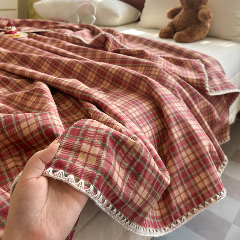 100% Cotton 2-Layers Breathable Gauze Vintage Plaid Bedspread Comforter Quilted Blanket Bed Coverlets