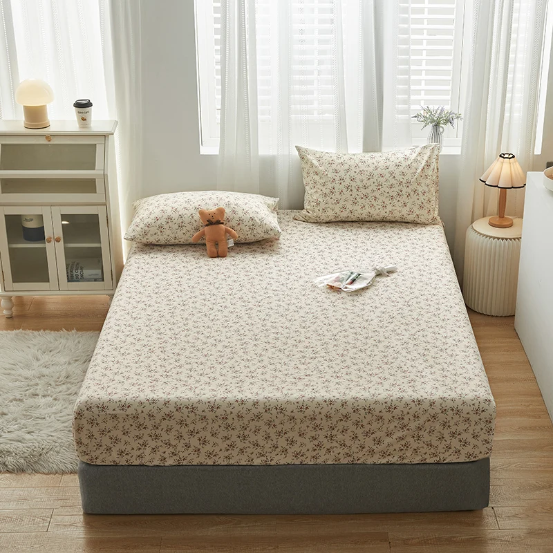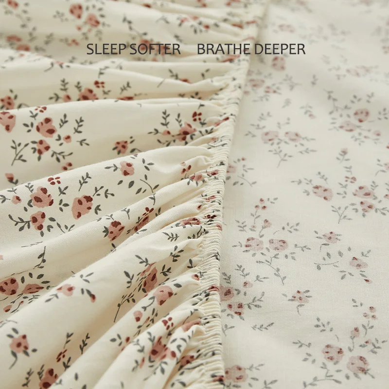 Wholesale 100% Cotton Fitted Sheet Set 3pcs Soft Breathable Printed Floral Bed Sheets Pillowcase Woven Percale for Living Room