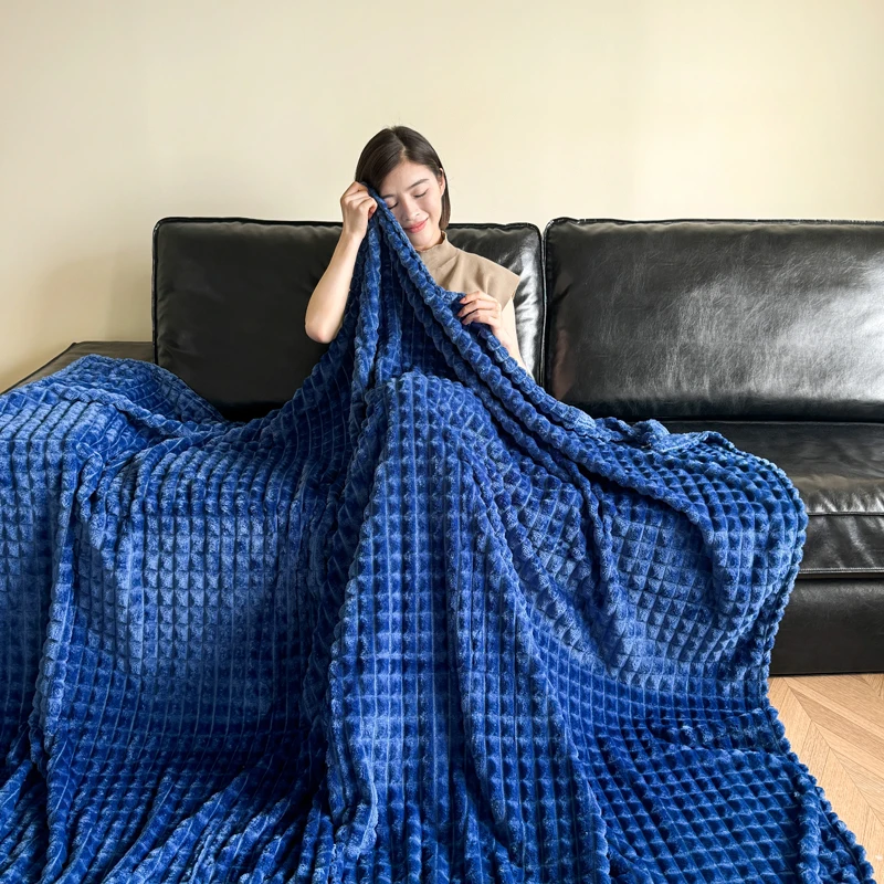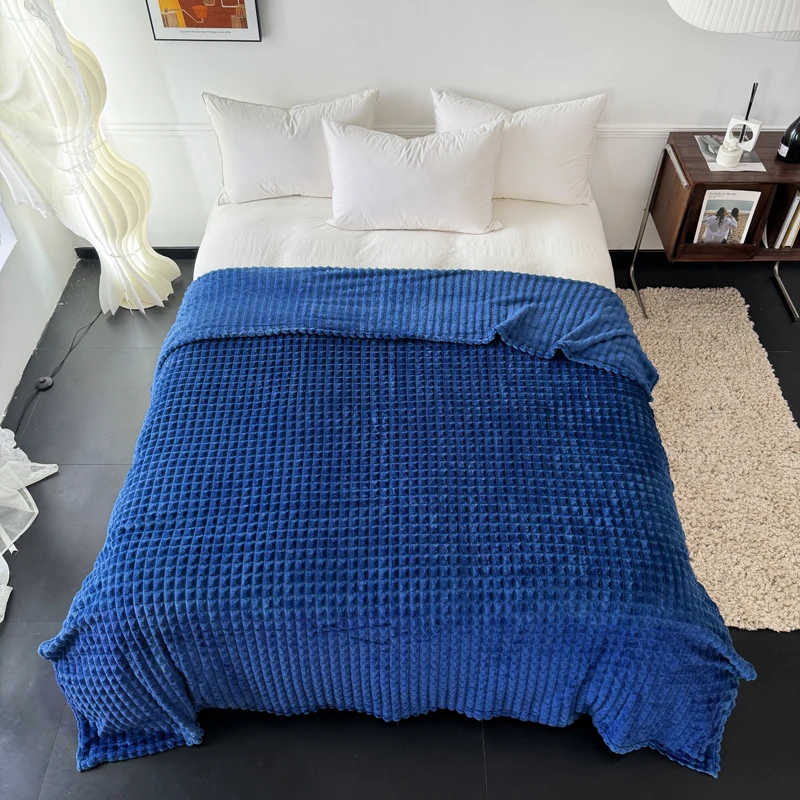 Luxury Knitted Bed Throw Wholesale Fluffy Fuzzy Flannel 100% Polyester Striped Faux Blanket for Home
