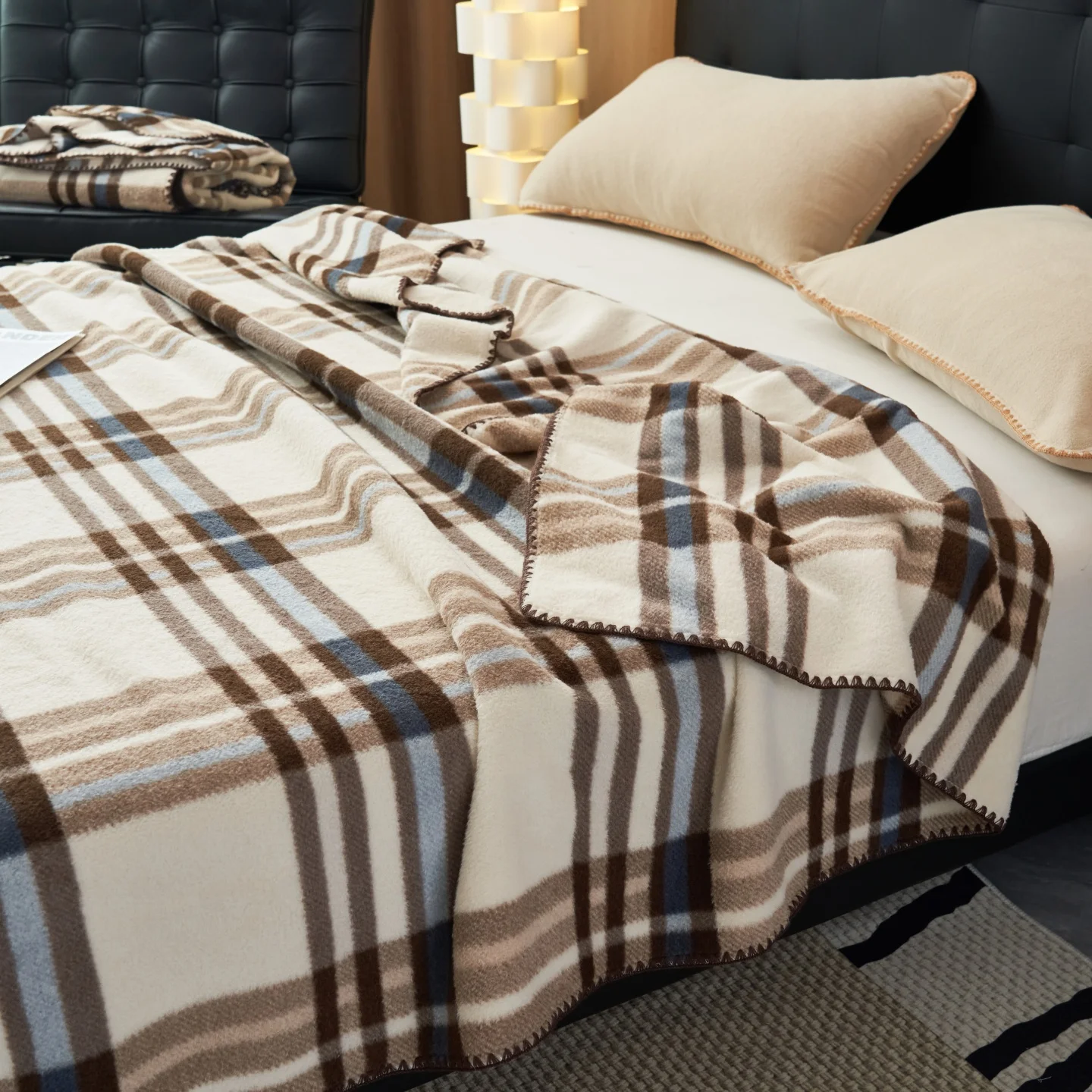 New Velvet Fleece Polyester Plaid Printed Blanket Lightweight Warm Bed Blanket