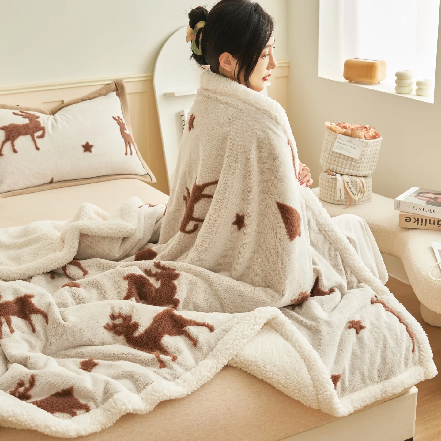 New Velvet Fleece Jacquard Winter Blanket Thickened Cheap Wholesale Warm Leisure Throw Blanket for Winter Home Decor