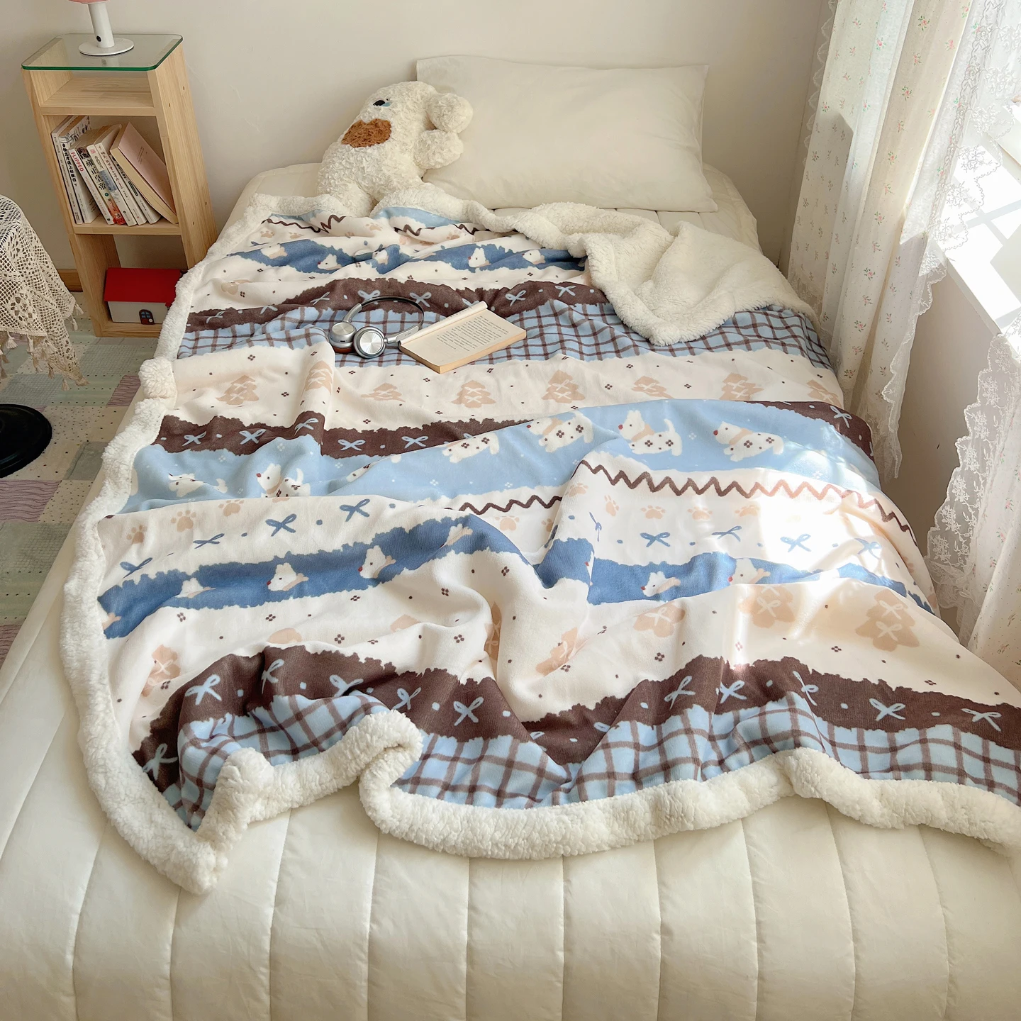 Custom Cartoon Print Sherpa Flannel Blanket Throw Double Thick Double Blanket