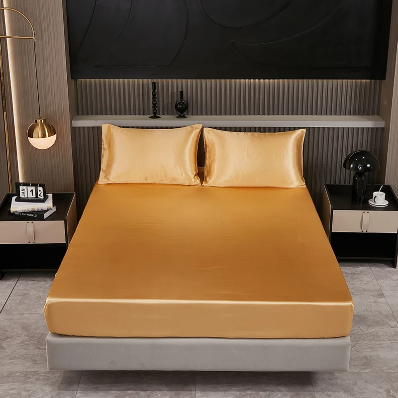 Custom Logo Satin Mattress Cover Four Seasons Breathable Noiseless Protective Bed Pad with Cooling Feature