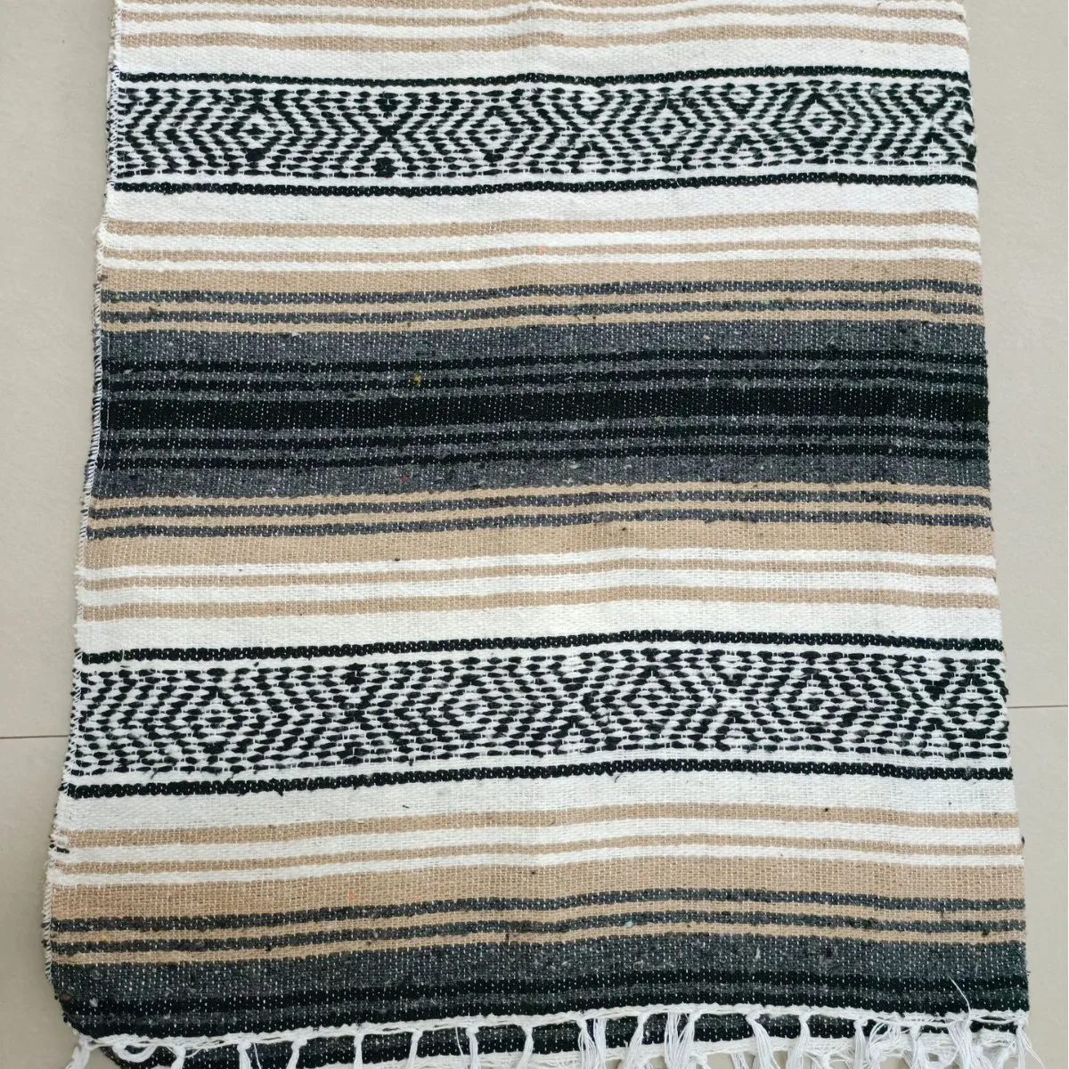 Mexican Geometric Knitted Fringe Blanket Wearable Throw Blanket Picnic Yoga Poly Cotton Camping