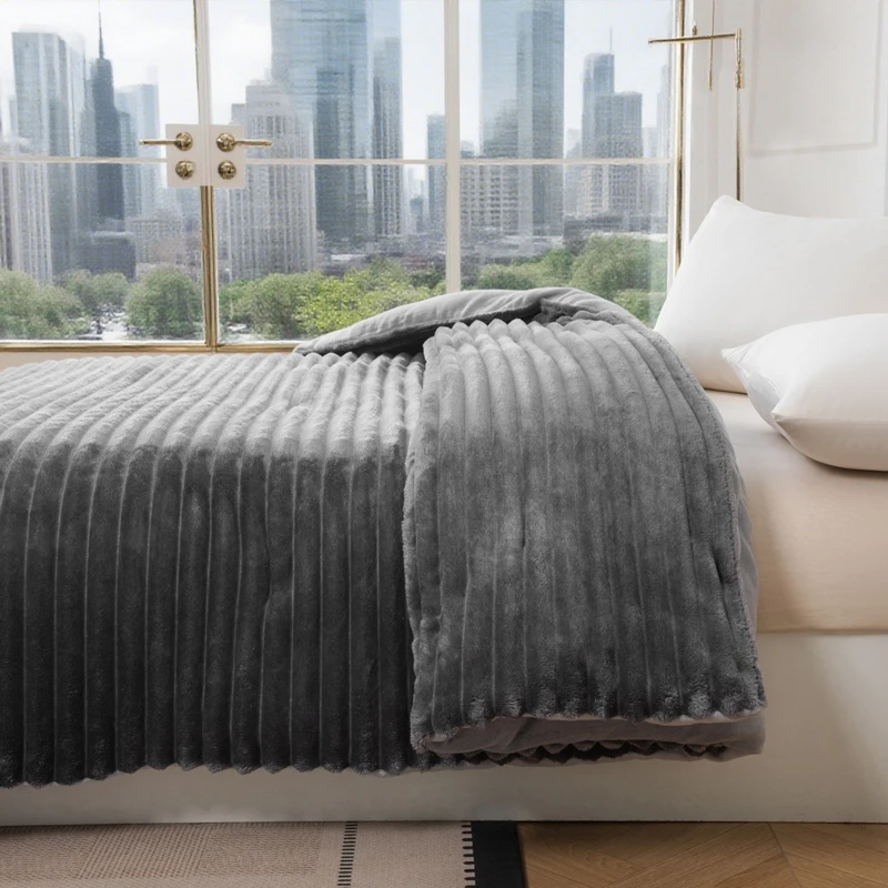 Solid Color Princess Wind Thickened Winter Warm Flannel Velvet Blanket 2PLY Thicken Warm Type